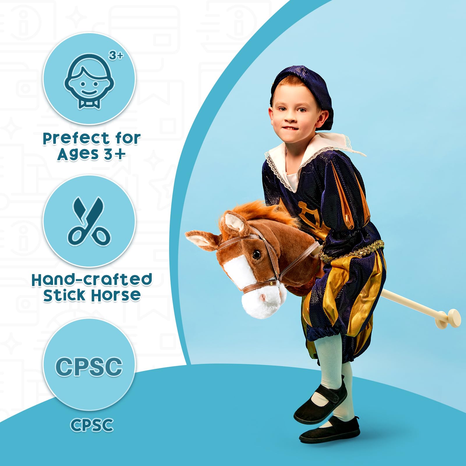- Q: What materials are used in the HollyHOME Stick Horse? A: The stick horse is crafted from premium materials, including a handcrafted soft and fluffy head, durable leather reins, and a sturdy wooden stick, ensuring both quality and a huggable experience.