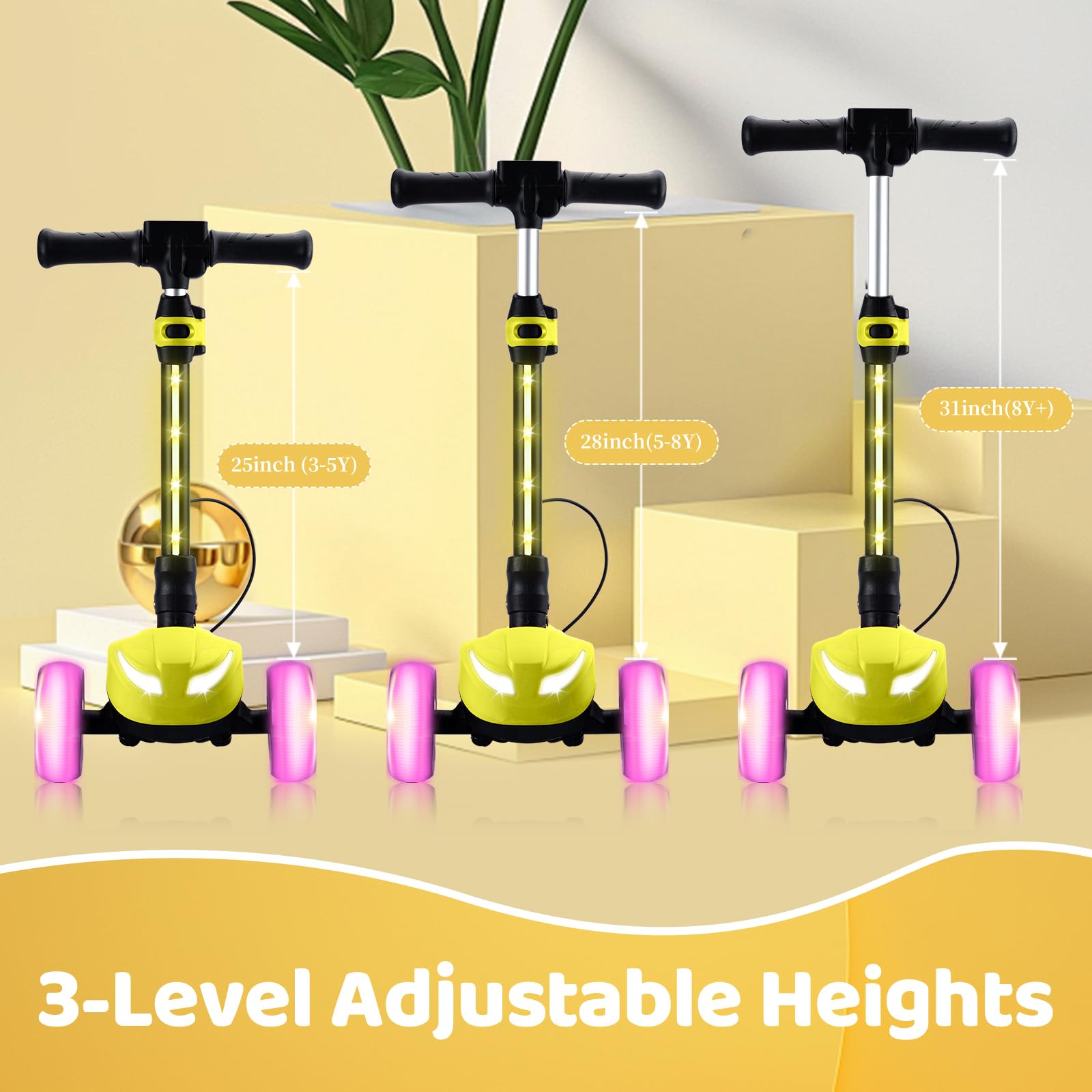 Kids Electric Scooter w/LCD Screen, Bluetooth Music, Light-Up Stem Deck & Wheels, Thumb Throttle, 3 Adjustable Heights, 150W Pow