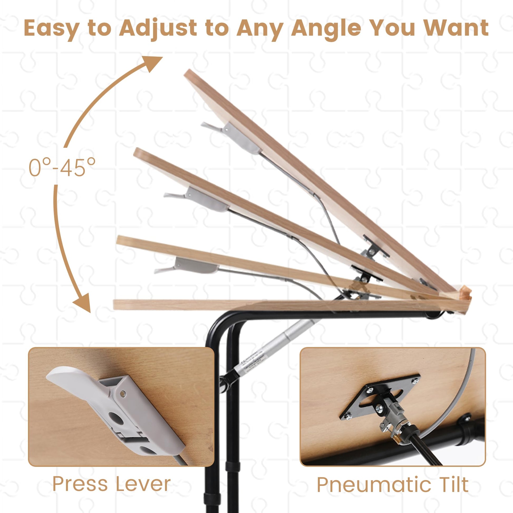 KROFEM Rolling Jigsaw Puzzle Table with Wheels, Adjustable Height, Pneumatic Tilt, Extra Large for 1500 Pieces, Portable Puzzle