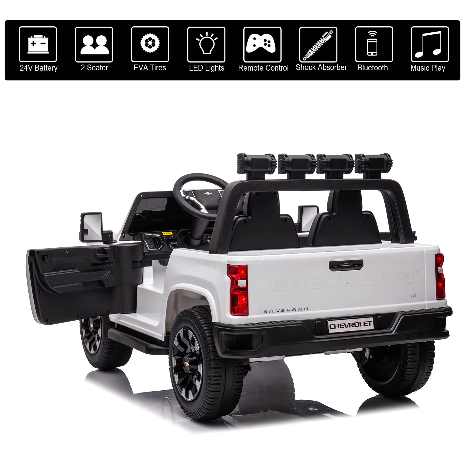 Luibas 24V Kids Ride On Car For Big Kid, Battery Powered Licensed Chevrolet Silverado Hd, Utv Truck With Eva Tires Wheels, 2 Sea