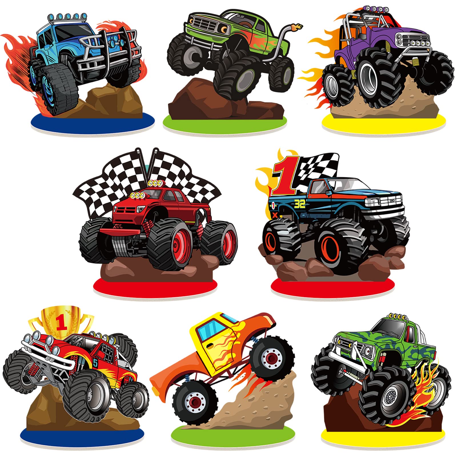 - Q: Do the decorations come in different designs? A: Yes, the truck table centerpieces feature various patterns including different types of trucks and designs like checkered and desert themes, making them visually appealing for any truck-themed event.
