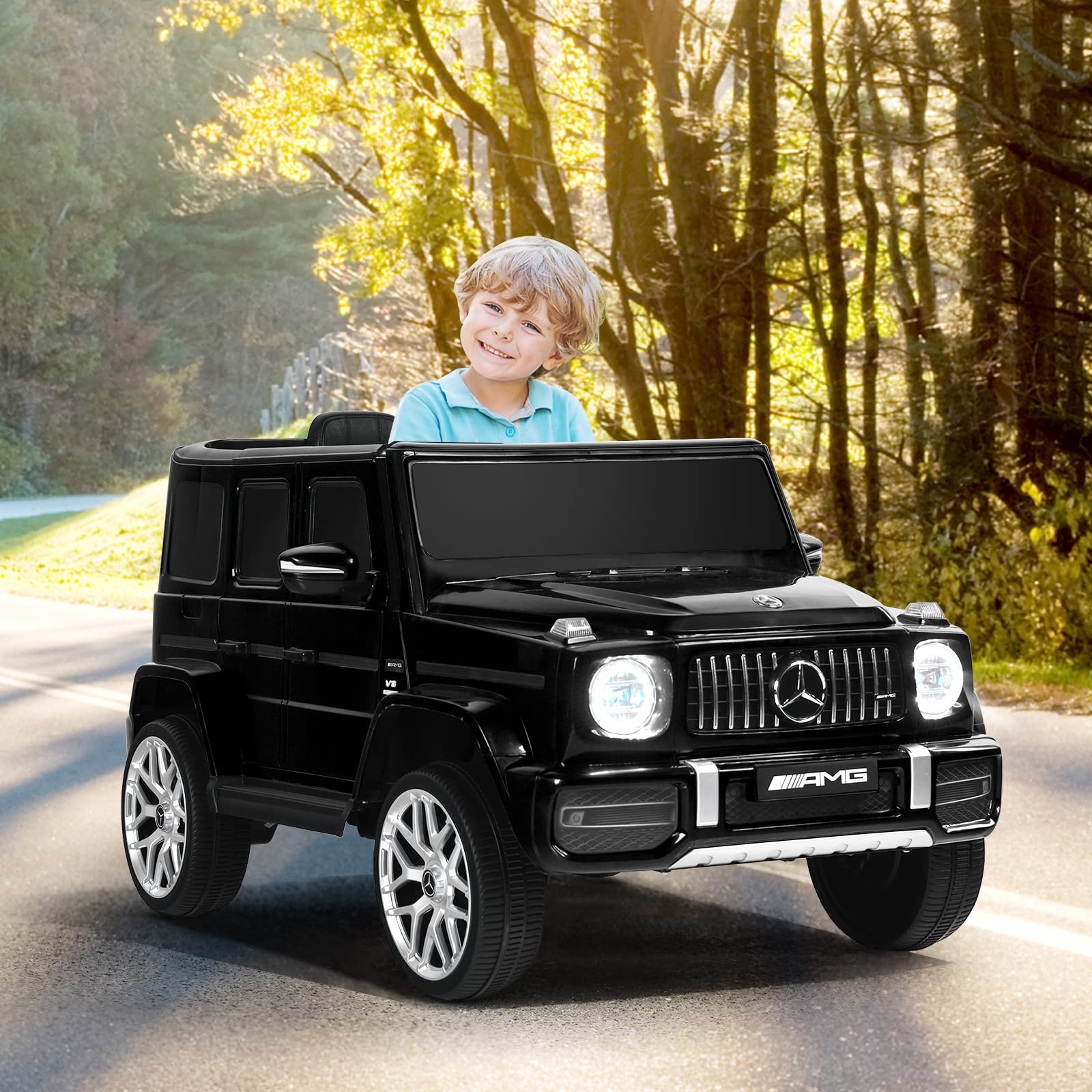 Olakids 12V Kids Ride On Licensed Mercedes Benz G63 Car Is Designed With Bright Led Lights, A Rotatable Steering Wheel And Foot Pedal, Which Is Mimicked From The Real Benz Vehicle To Provide Realistic Driving Experience. This Mercedes Benz Kids Car 2 Seater Can Be Operated By Both Children And Parents. Pedals And Steering Wheel Is One Way For Children To Drive The Car, And Using Parental Remote Is The Other Way. Note That 1.5V Aaa Batteries Are Not Included. The Mercedes Ride On Car For Kids Has Rear Spring Suspension, And A Slow Start Function With Seat Belt To Make Sure A Safe Playtime On Almost Any Terrains. Solid Pp Cover Makes The Ride-On Car A Lasting Delight With A Maximum Weight Of 66 Lbs. Featuring Music, This Ride-On Car Manages To Bring More Joy To Kids. Usb, Fm And Bluetooth Mean To Connect Other Music Devices For More Audio Options For Your Kids’ Preference.