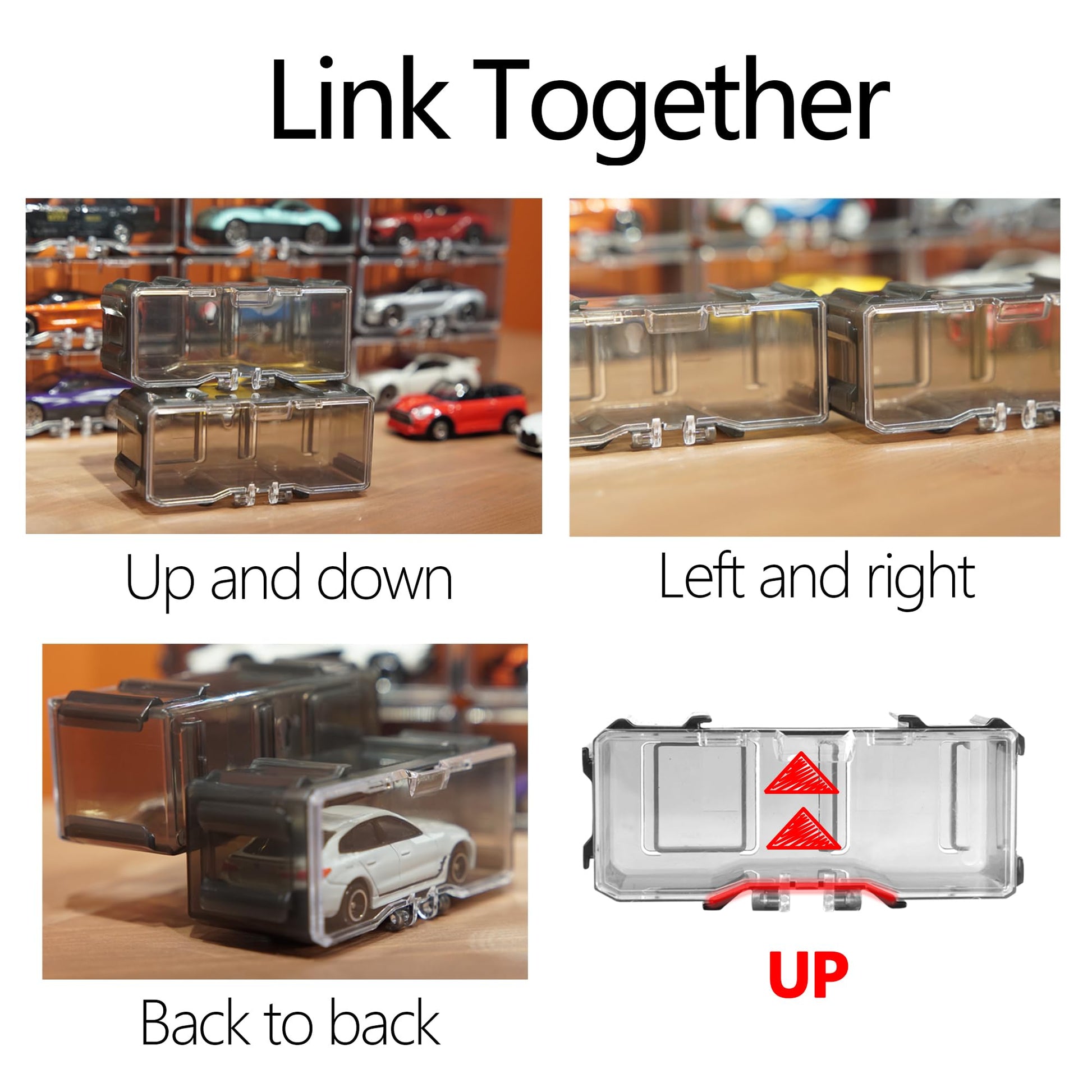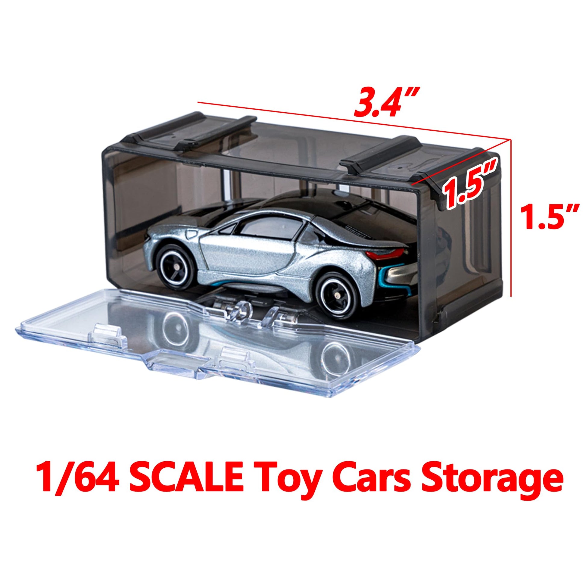 - Q: What are the dimensions of each individual display case? A: Each 1/64 scale toy car display case measures 3.4 inches in length, 1.5 inches in width, and 1.5 inches in height.