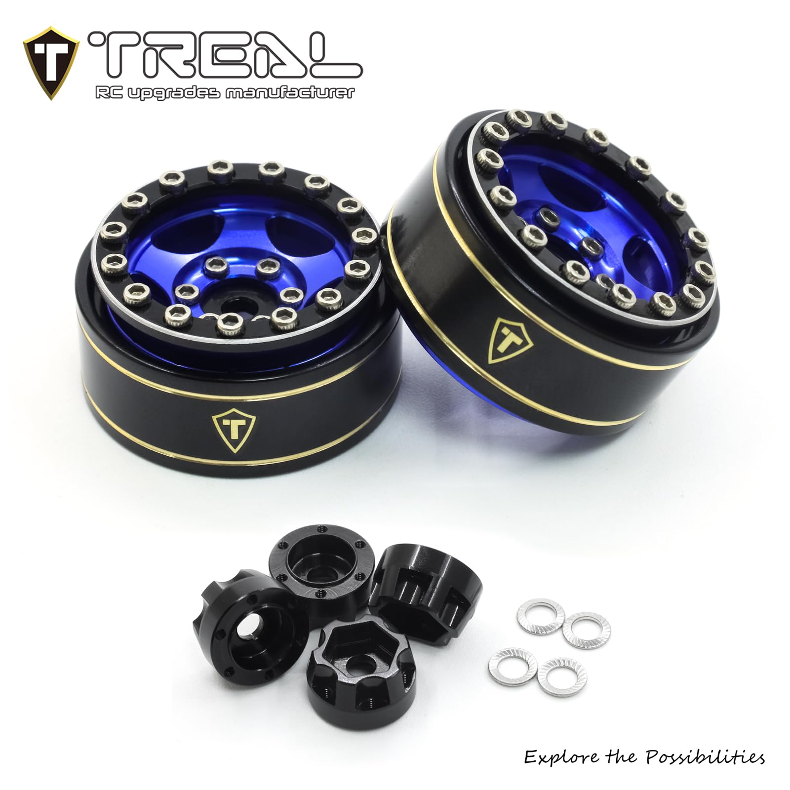Treal 1.0 Beadlock SCX24 Wheels (4P) Classic 5-Star 1 Micro Bead lock Wheel for Axial 1/24 SCX24 Dodge Deadbolt C10 Gladiator Crawler 27.3g (Black-Black) Features: - 1.0 wheel size for 7mm Hex drive 1:24 scale crawler -Beadlock design,with 15 screws for top rings and 5 screws for the hex -Precision CNC machined aluminum 6061 Rims -Brass rings (balck coated) to add weight and help the crawler performance -Color options: Red rims+ Black top rings; Grey rims+Black top rings; Black rims+ Black top rings; Red rims+Silver top rings; Grey rims + Silver top rings; Black rims + Silver top rings Specification: -Outer Diameter: 31mm(1.22) -Width: 15mm (0.59) -Weight: Approx 27.3 grams(0.06 lb) per wheel (fully assembled) -Hex Hub: 7mm(0.275) -Axle Through Hole Dia.: 3mm(0.118) Package Includes: -Aluminum Wheel rims with Brass Rings assemble kit 4pcs -Hardwares After-sales service >>Please kindly contact us for any manufacture quality or install issue, we will answer within 24 hours. >>We provide free replacement or 100% refund for any quality issue.