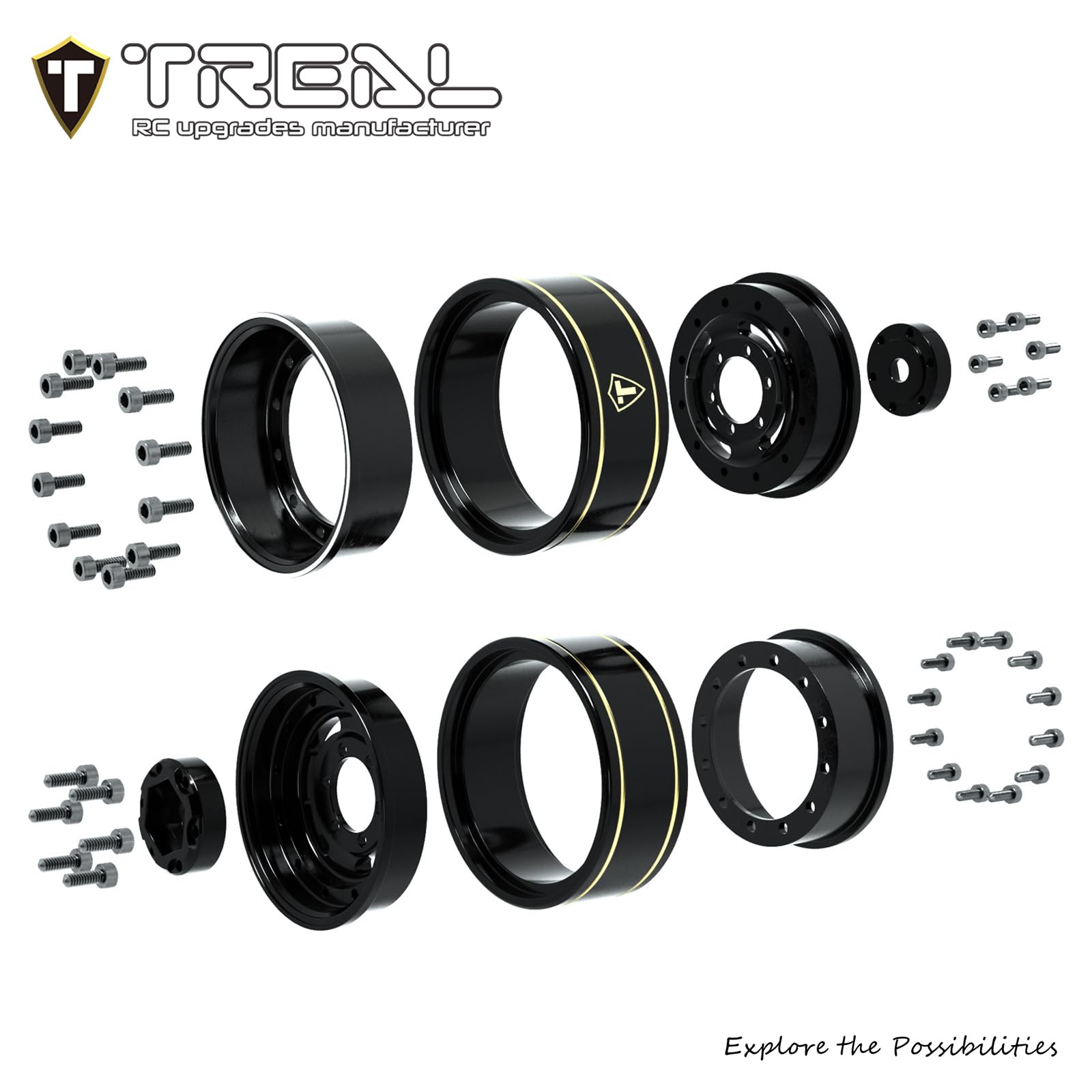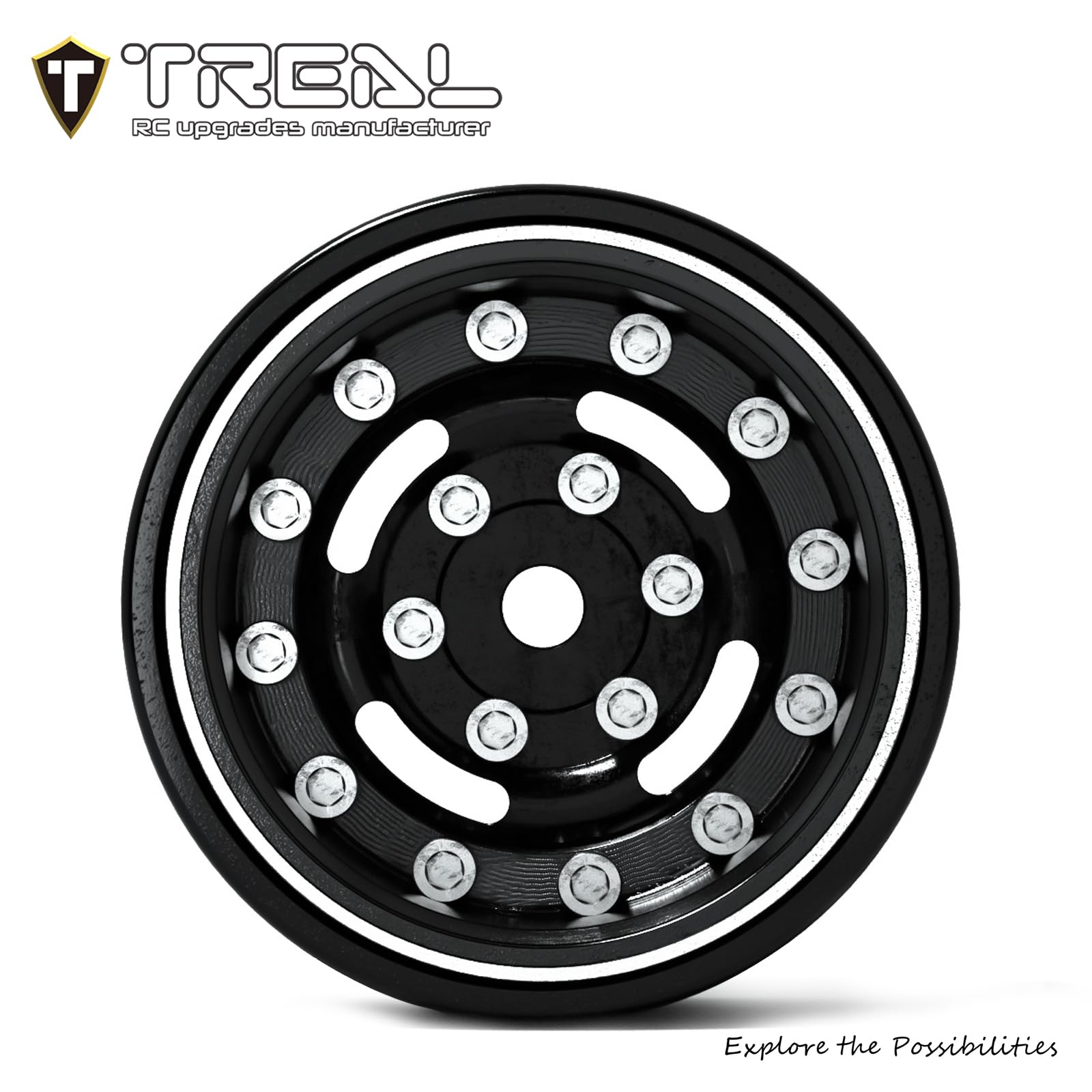 Treal 1.0 Beadlock Wheels Deep Dish Rims (4P) For Scx24 Ax24 Fcx24 Trx4M 1/24 1/18 Crawler Car-Type F(Black)