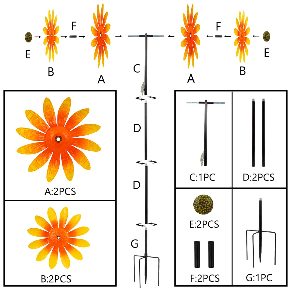 View compareViveta Sunflower Outdoor Wind Spinner, 4 Layers Metal Wind Spinners, Decorative Pinwheels For Yard Patio Lawn Garden