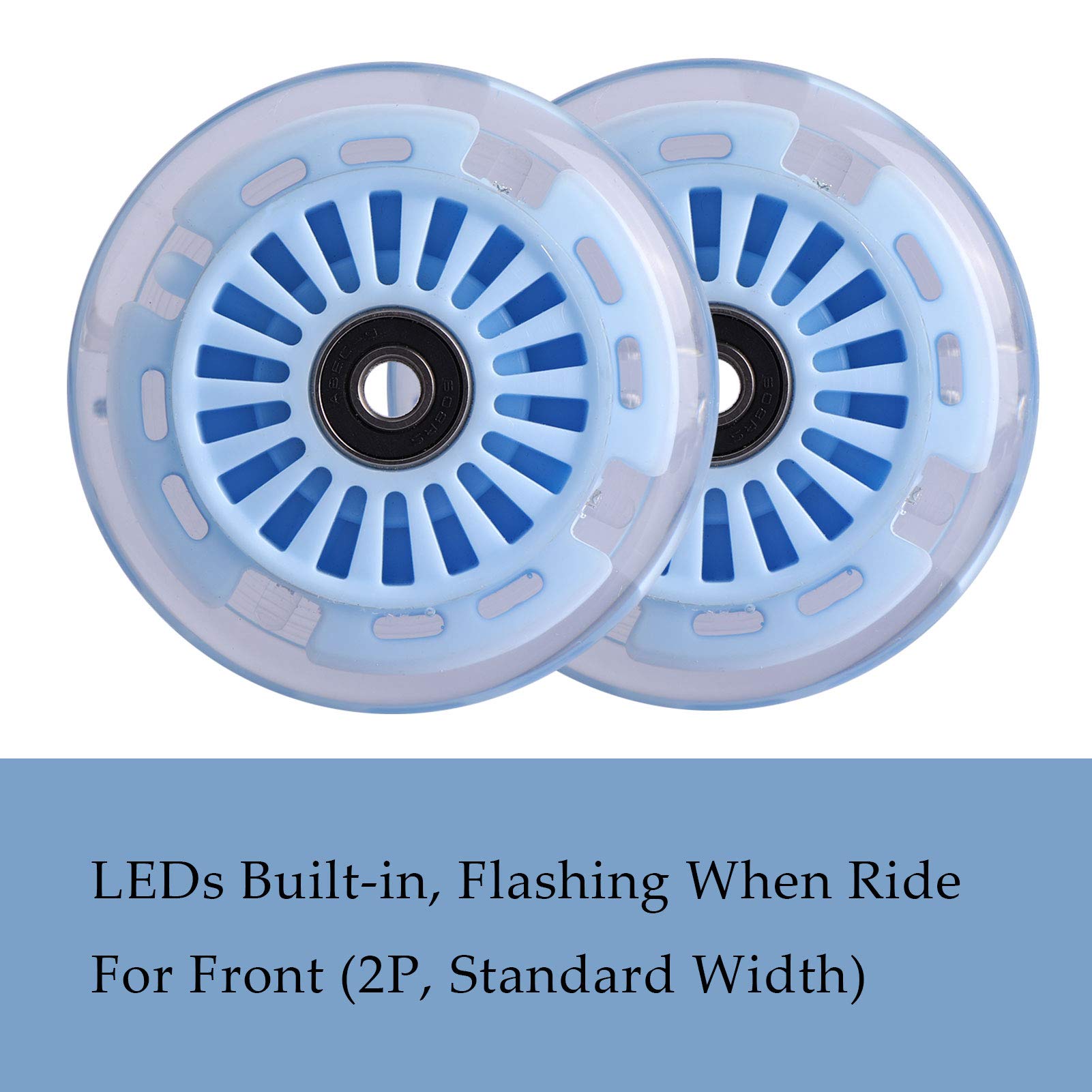 Wiggle Car Polyurethane Replacement Wheels Set (Front,2P Light Up), Swing Car Wheels Pack (Rear,2P Narrower) Upgrade For Ride-On Toys (Sky Blue)