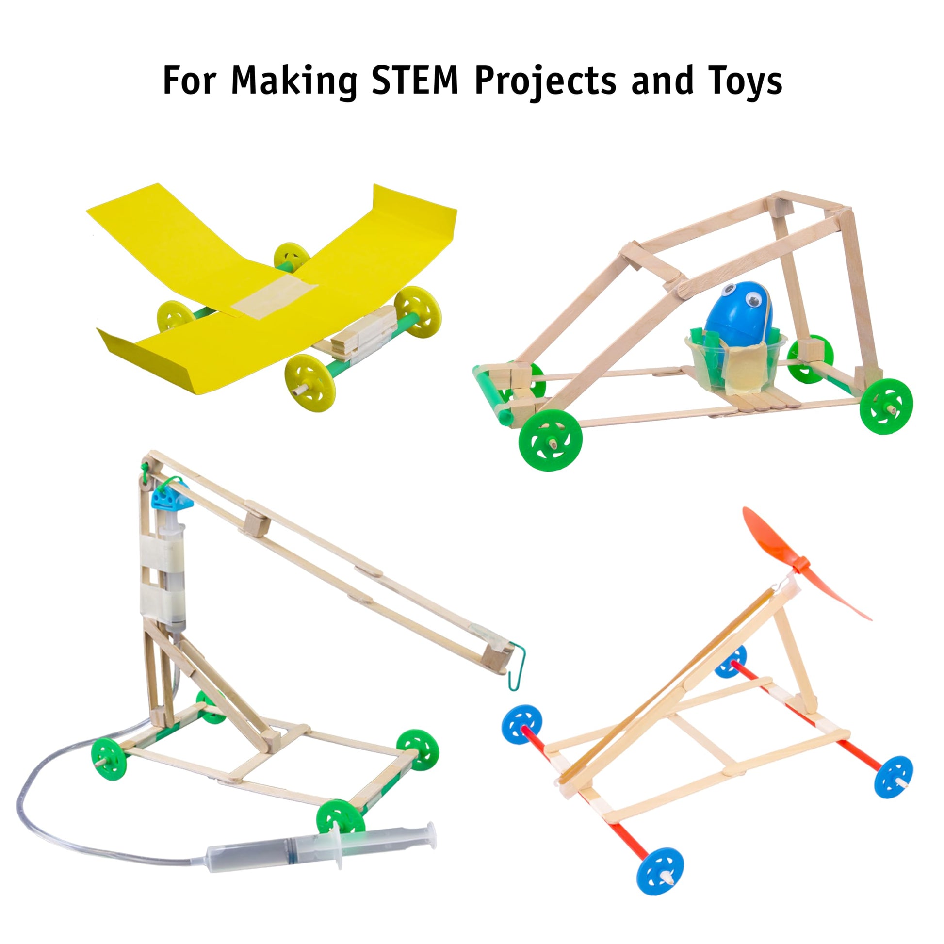 - Q: How many cars can I build with one pack of wheels? A: With 100 wheels in each pack, you can create up to 25 four-wheeled cars, making it perfect for classrooms or group activities.