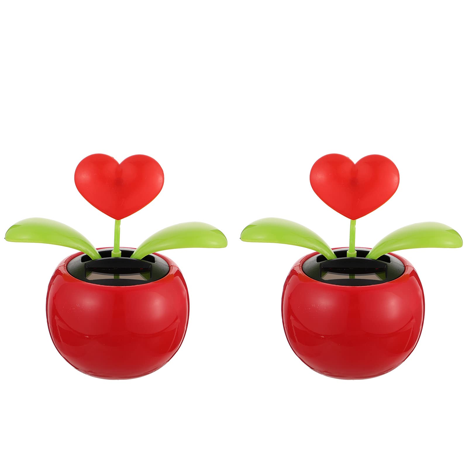 Besportble 2Pcs Solar Dancing Figurines Solar Powered Dancing Flower Heart Swinging Dancer Toy For Car Dashboard Office Desk Dec