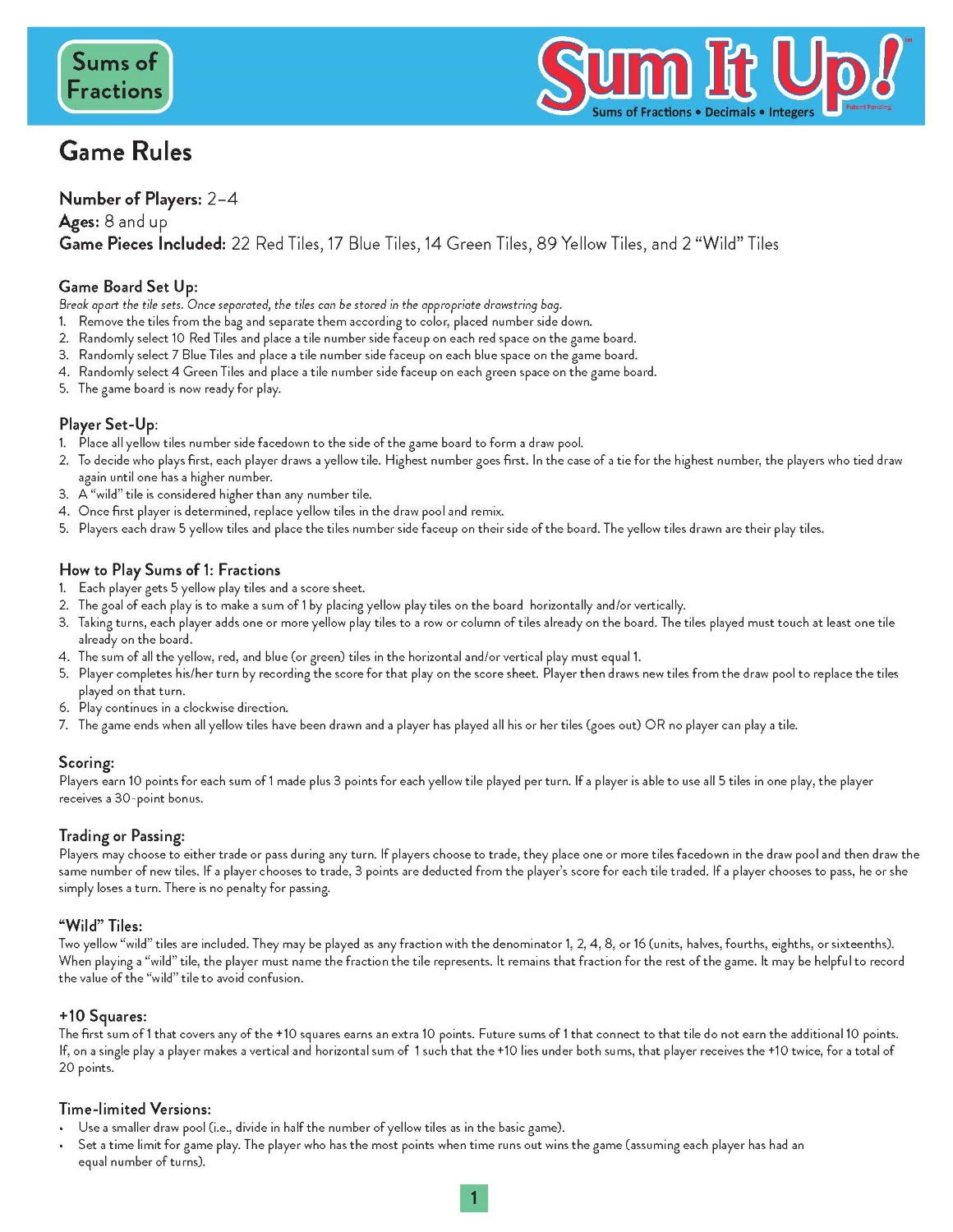Didax Educational Resources Sum It Up! Sums Of Fractions, Decimals, Integers