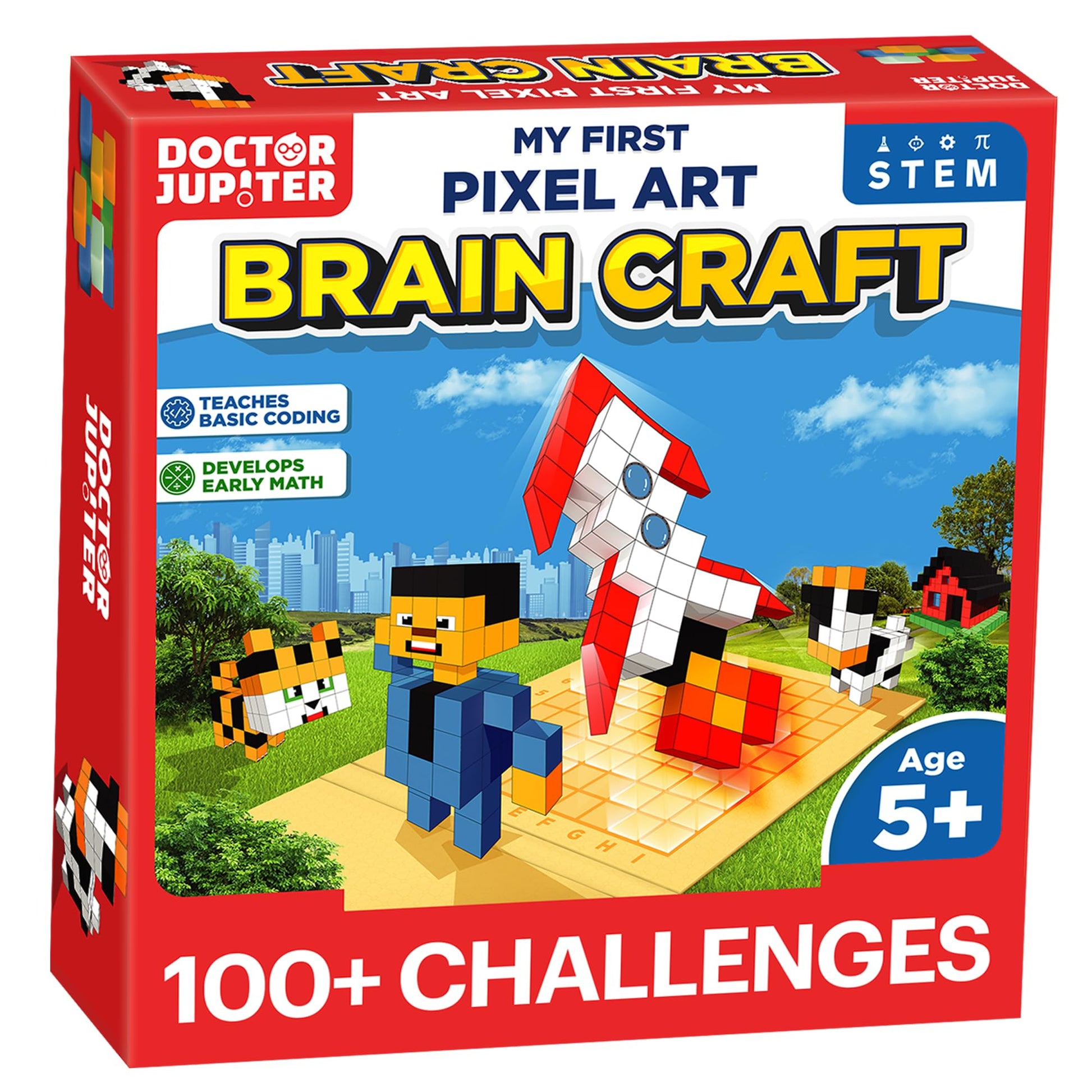 Unlock the world of creativity, logic, and early STEM learning with My First Pixel Art Brain Craft by Doctor Jupiter! This engaging and educational kit introduces kids to pixel art through over 100 exciting challenges that build STEM skills, introduce coordinates, teach basic coding, develop early math and enhance creativity. With fun activities like symmetry puzzles, coordinate plotting, art-by-numbers, and basic coding exercises, children will sharpen their logic and spatial reasoning skills while creating vibrant pixel art masterpieces. The kit includes a magnetic pixel play board and 250+ colorful pixel pieces that make hands-on learning interactive and mess-free. The step-by-step instruction manual ensures an easy and frustration-free learning experience. Perfect for children aged 5 and above, Brain Craft fosters a love for art and logical thinking in a playful way. It contains an Ultimate Story Book of famous coders to inspire the young generation of learners to fall in love with STEM learning. A great gift for birthdays, holidays, or educational play, My First Pixel Art Brain Craft offers hours of creative fun while building essential early STEM skills. Let your child explore the world of art and logic with this must-have brain-boosting activity set!
