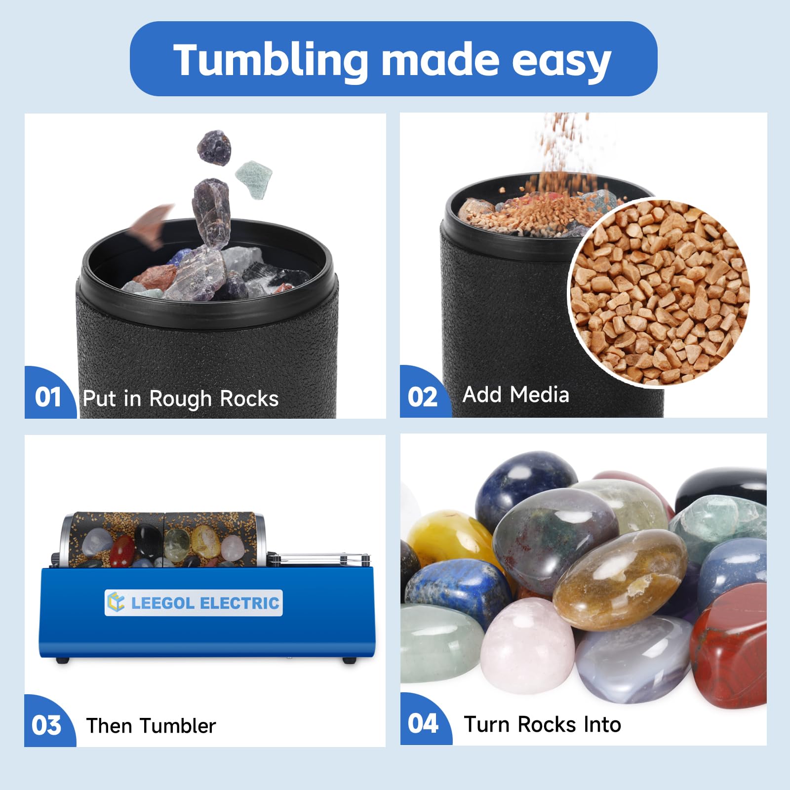 - Q: What is the capacity of the Leegol Electric Replacement 3lb Barrel? A: The Leegol Electric Replacement Barrel has a spacious capacity of 3lbs, allowing you to tumble larger quantities of rocks and achieve excellent polishing results.