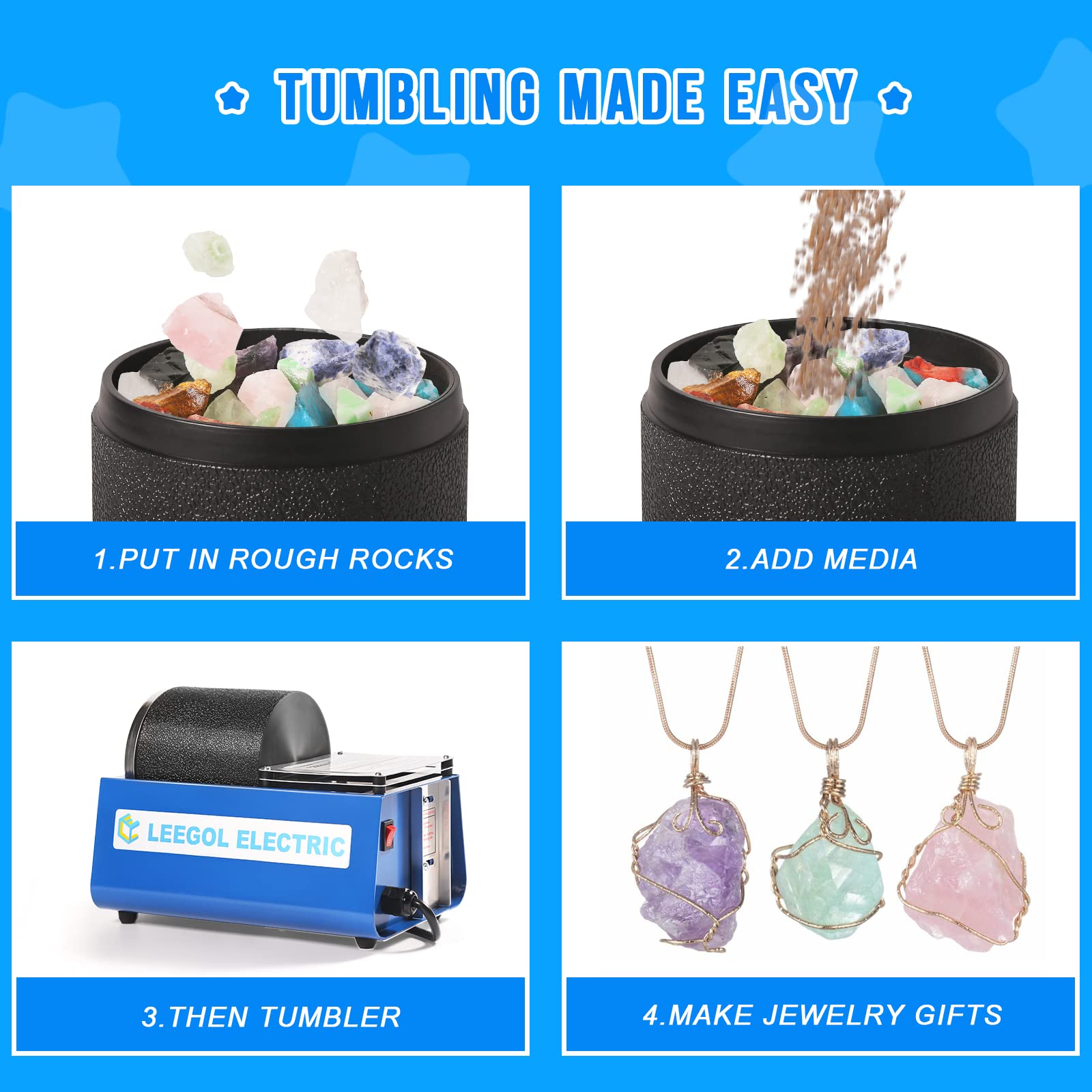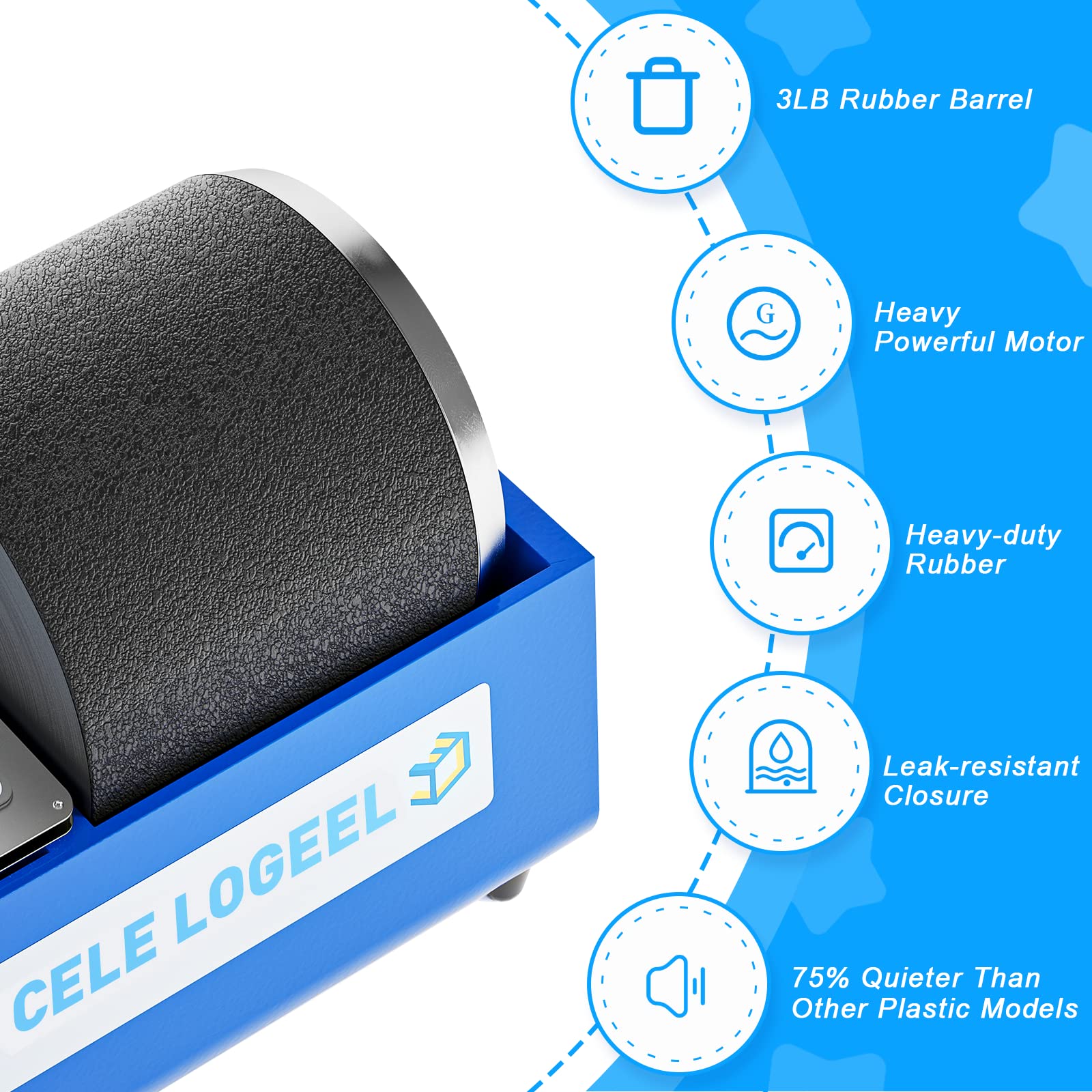 - Q: Is the rock tumbler quiet during operation? A: Yes, the Leegol rock tumbler is designed to be 40.6% quieter than other models, and the rubber barrel reduces noise by 75% compared to plastic barrels, allowing for a quieter polishing experience.
