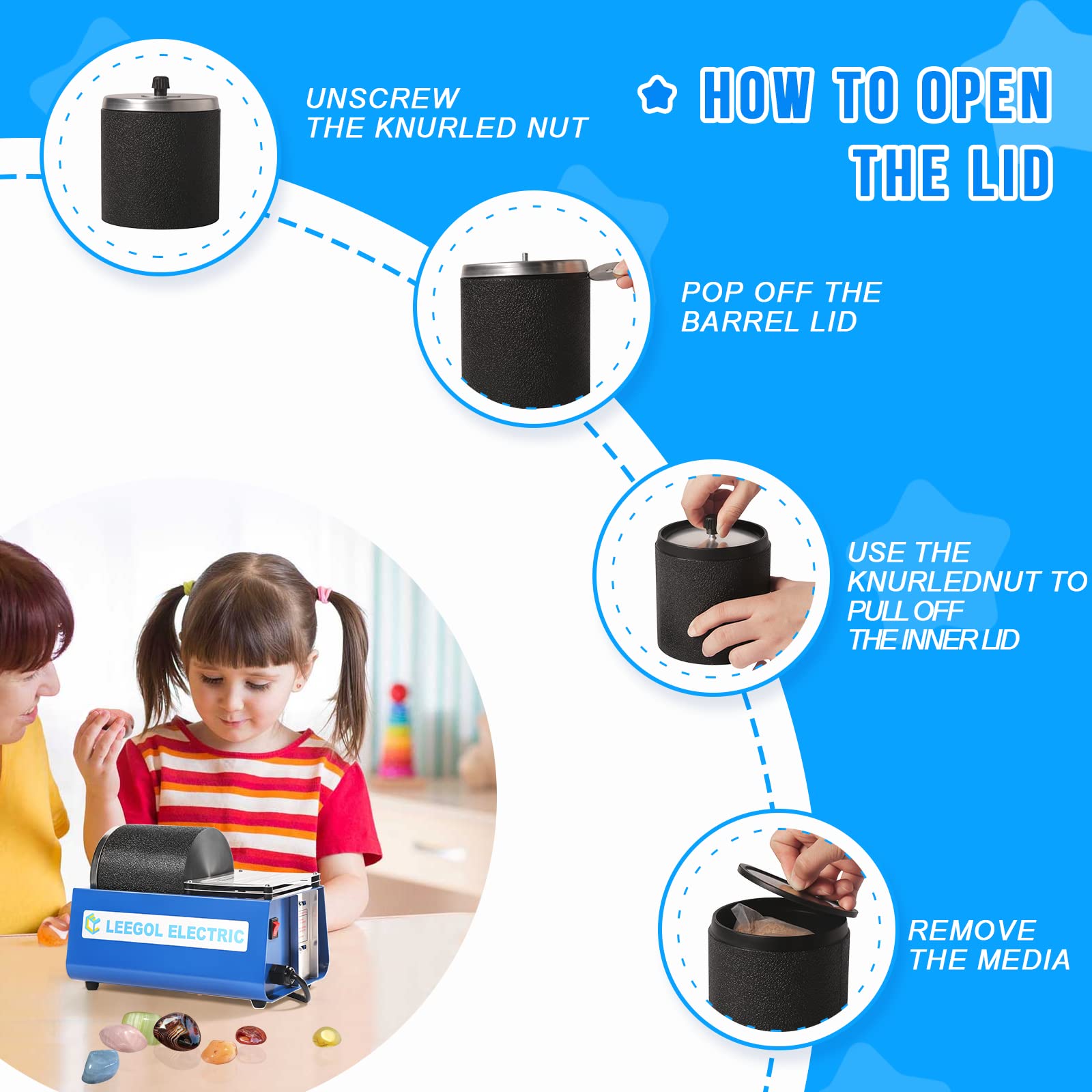 - Q: Can I contact customer support if I have issues with the tumbler? A: Absolutely! If you encounter any problems while using the rock tumbler machine, you can contact customer support, and they will respond within 24 hours to help resolve your issue.