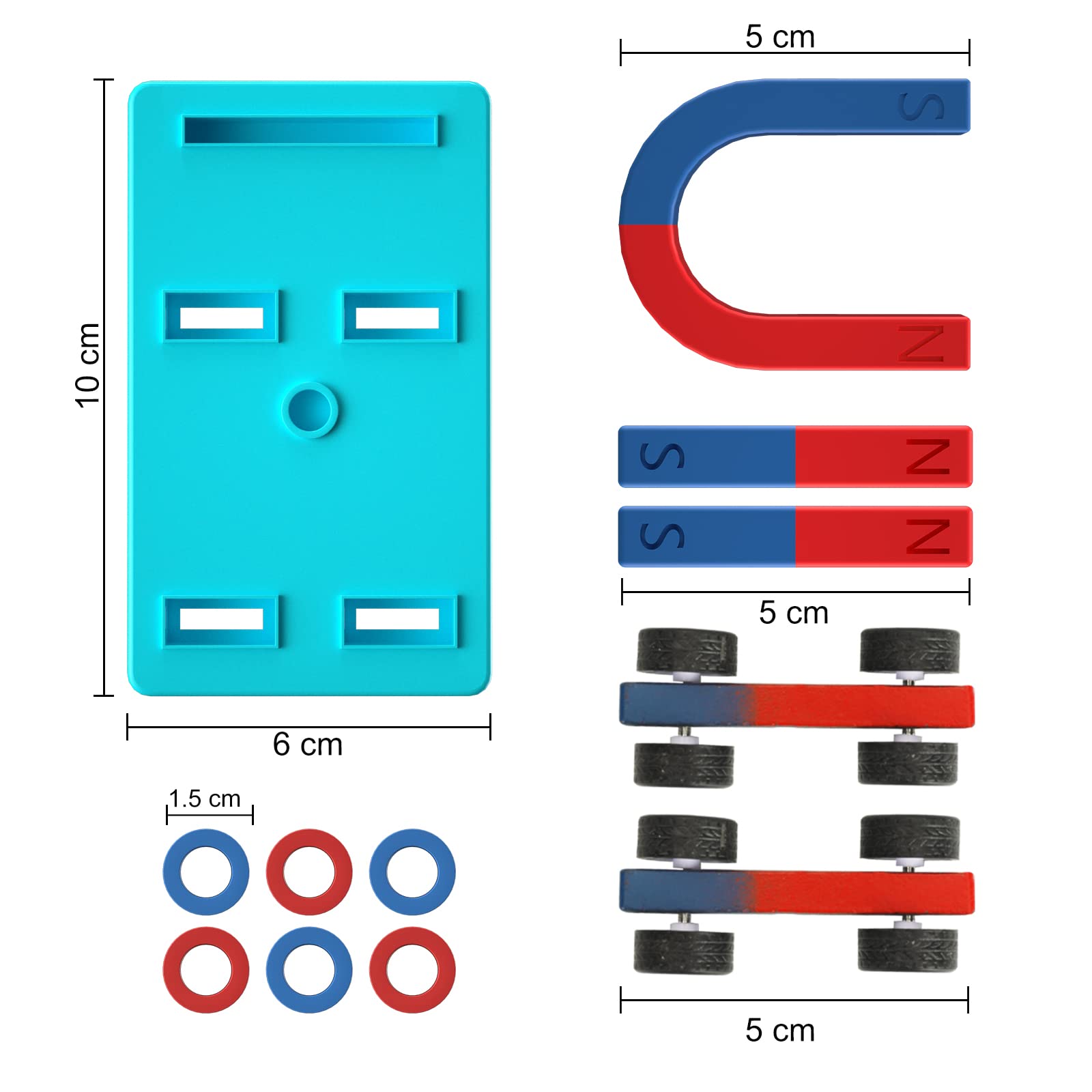 - Q: What materials are included in the Mysterystone Science Magnets kit? A: The kit includes a variety of magnets such as U-shaped magnets, bar magnets, and horseshoe magnets, along with 1 pound of iron filings in a storage jar, a compass, rubber rings, a suspension base, and a plastic rod, providing a comprehensive set for conducting various magnetic experiments.