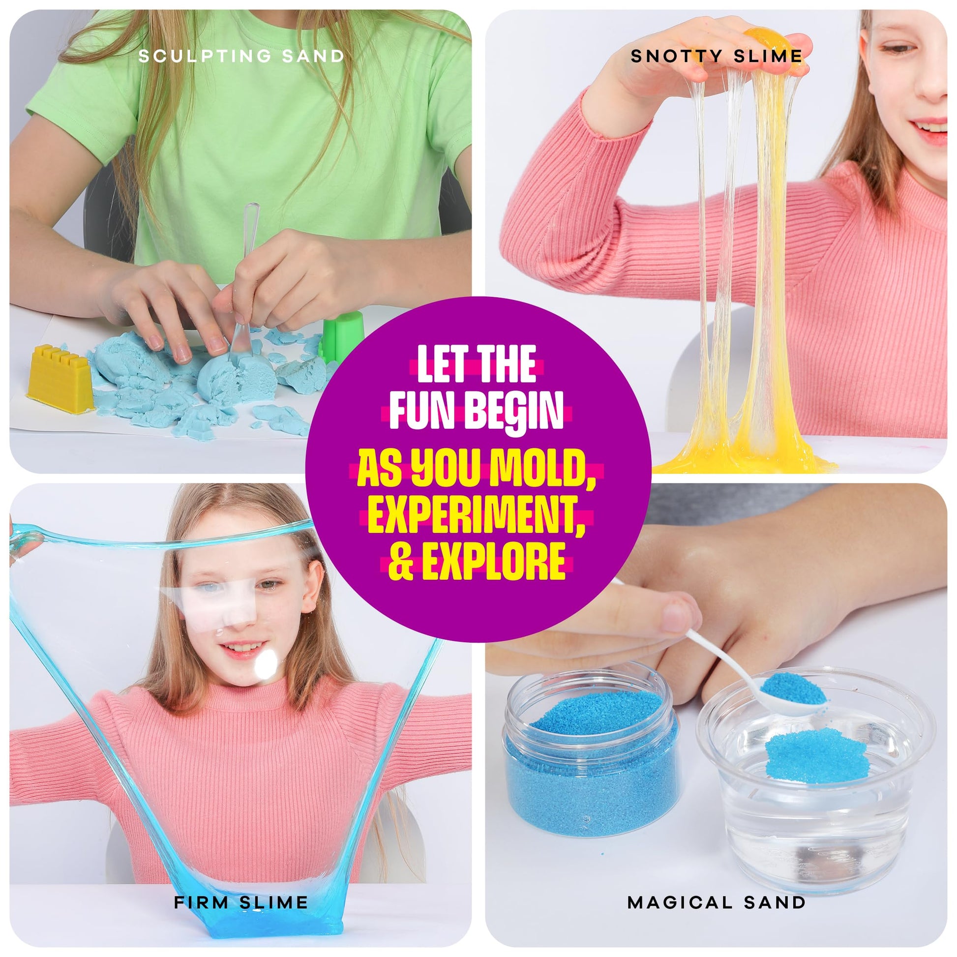 Slime, Putty & Sand Sensory Science Kit - Slimes For Kids Age 8-10 8-12 - Play Sands Kits For Boys & Girls - 8 9 10 Year Old Boy Gifts - Christmas Birthday Gift - Stem Toys