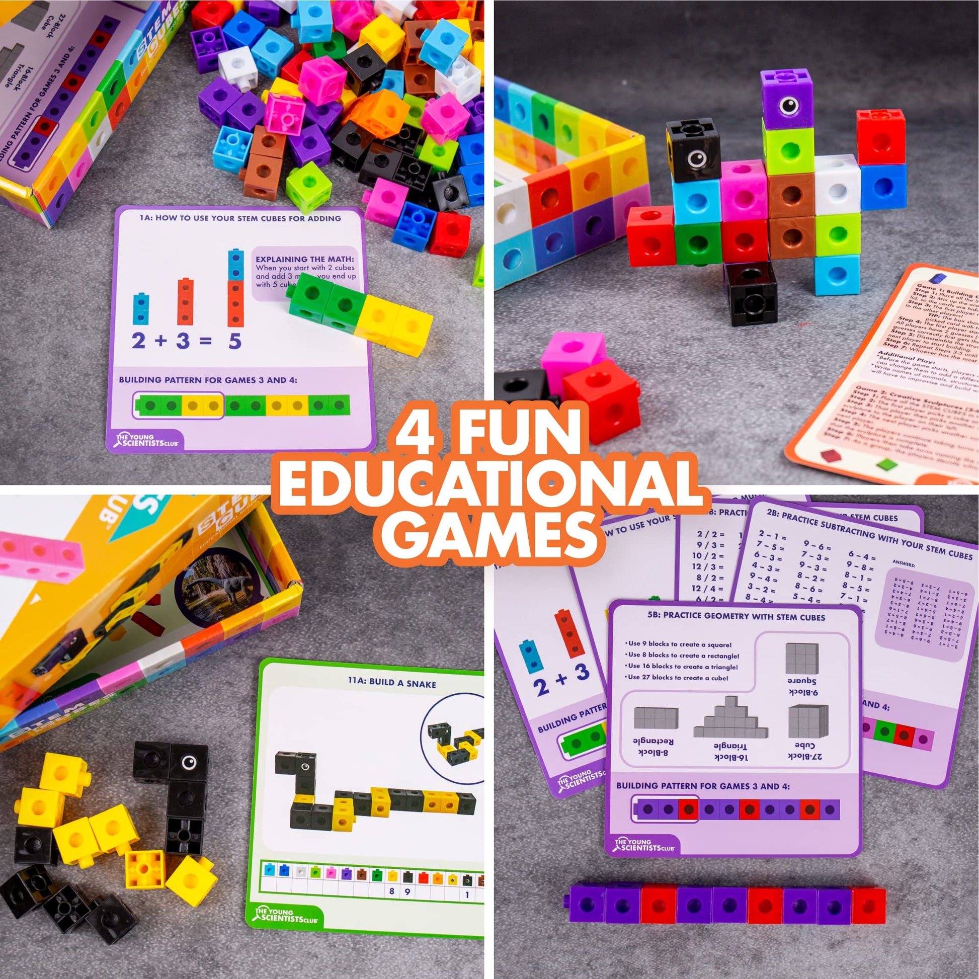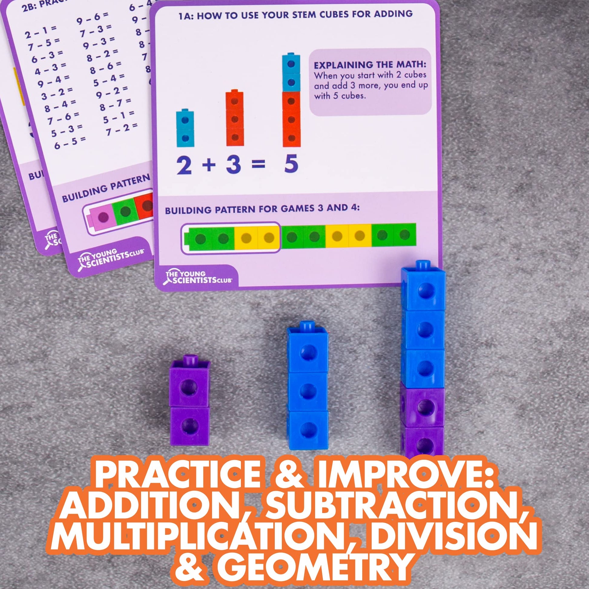 The Young Scientists Club Stem Cubes, Build, Learn & Create With 100+ Math Cubes Manipulatives, 4-In-1 Educational Games, Math Cubes For Kids Ages 4-8, Awesome Learn Through Play Toys