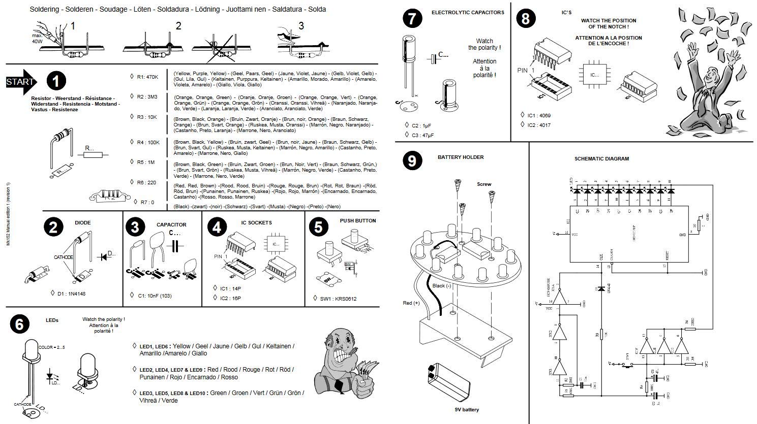 - Q: Is soldering required to assemble the Velleman MK152 kit? A: Yes, soldering and assembly are required to complete the Velleman MK152 Spinning LED Wheel MiniKit. Basic soldering skills are necessary to join the components correctly.