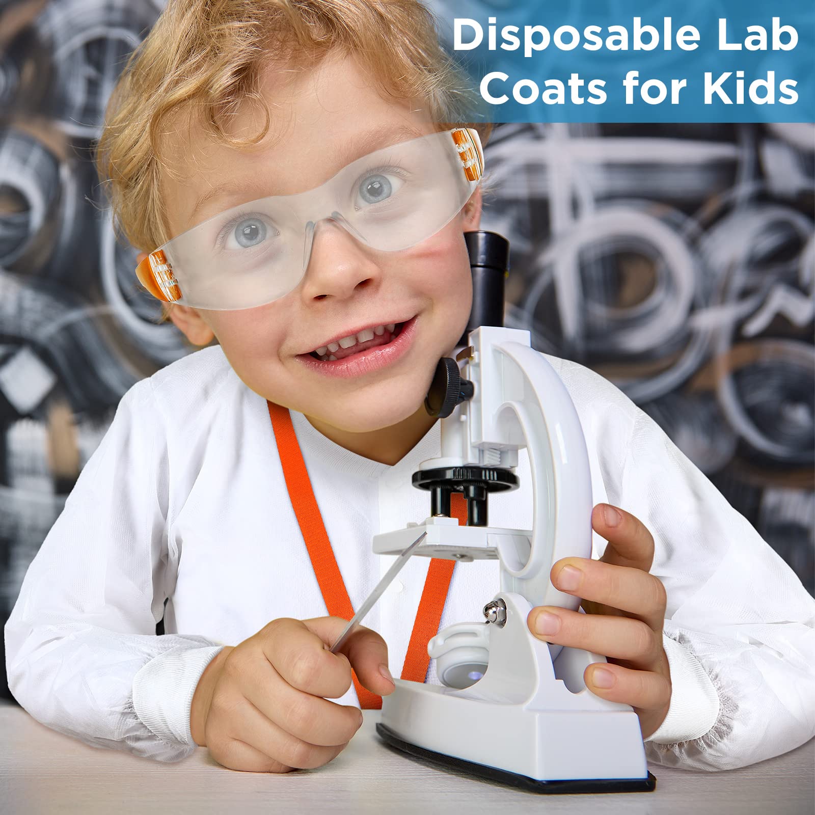 - Q: How should I care for the lab coats and goggles after use? A: The lab coats are disposable and meant for single use, so they can be discarded after the activity. The goggles can be cleaned with a mild soap solution and water to ensure they remain in good condition for future use.