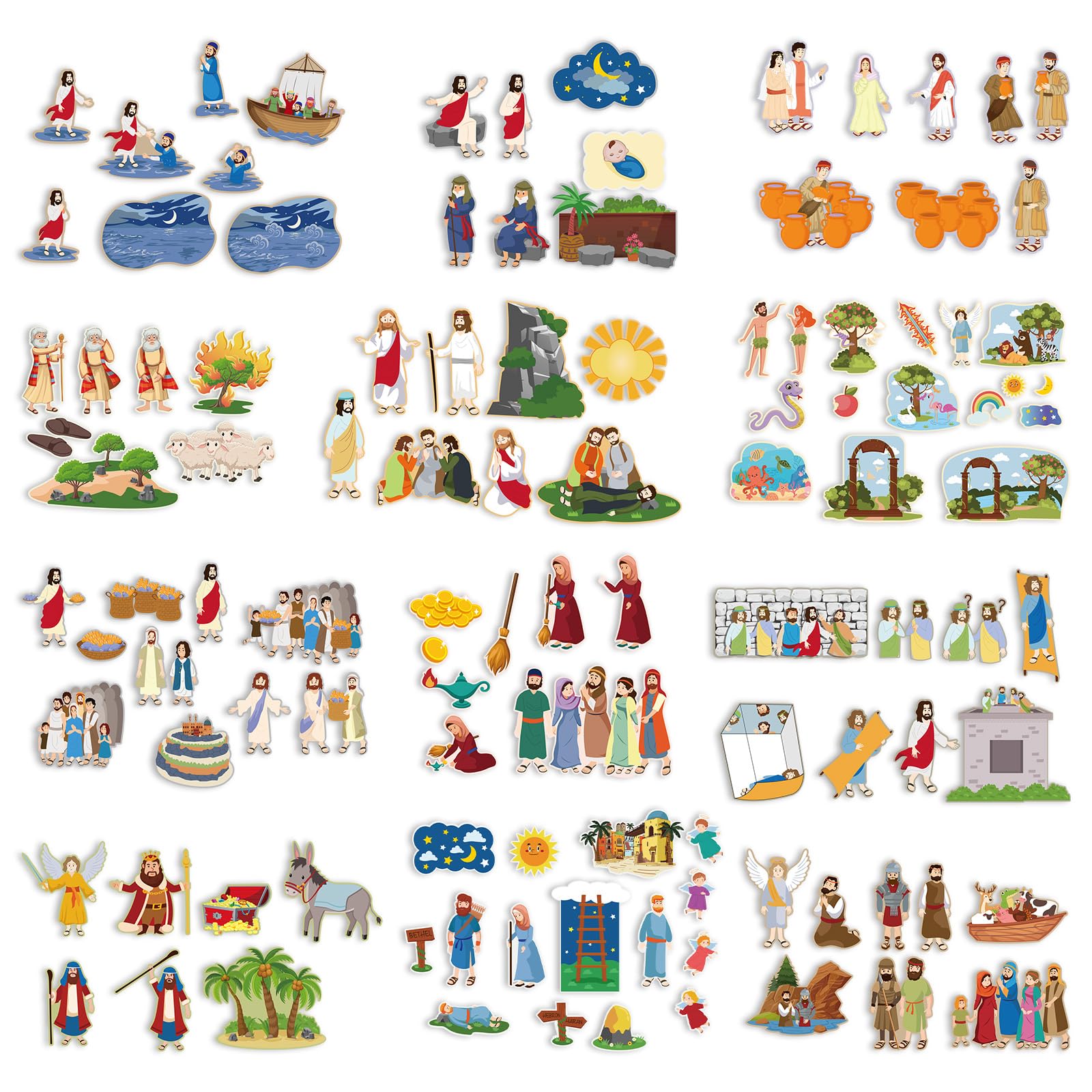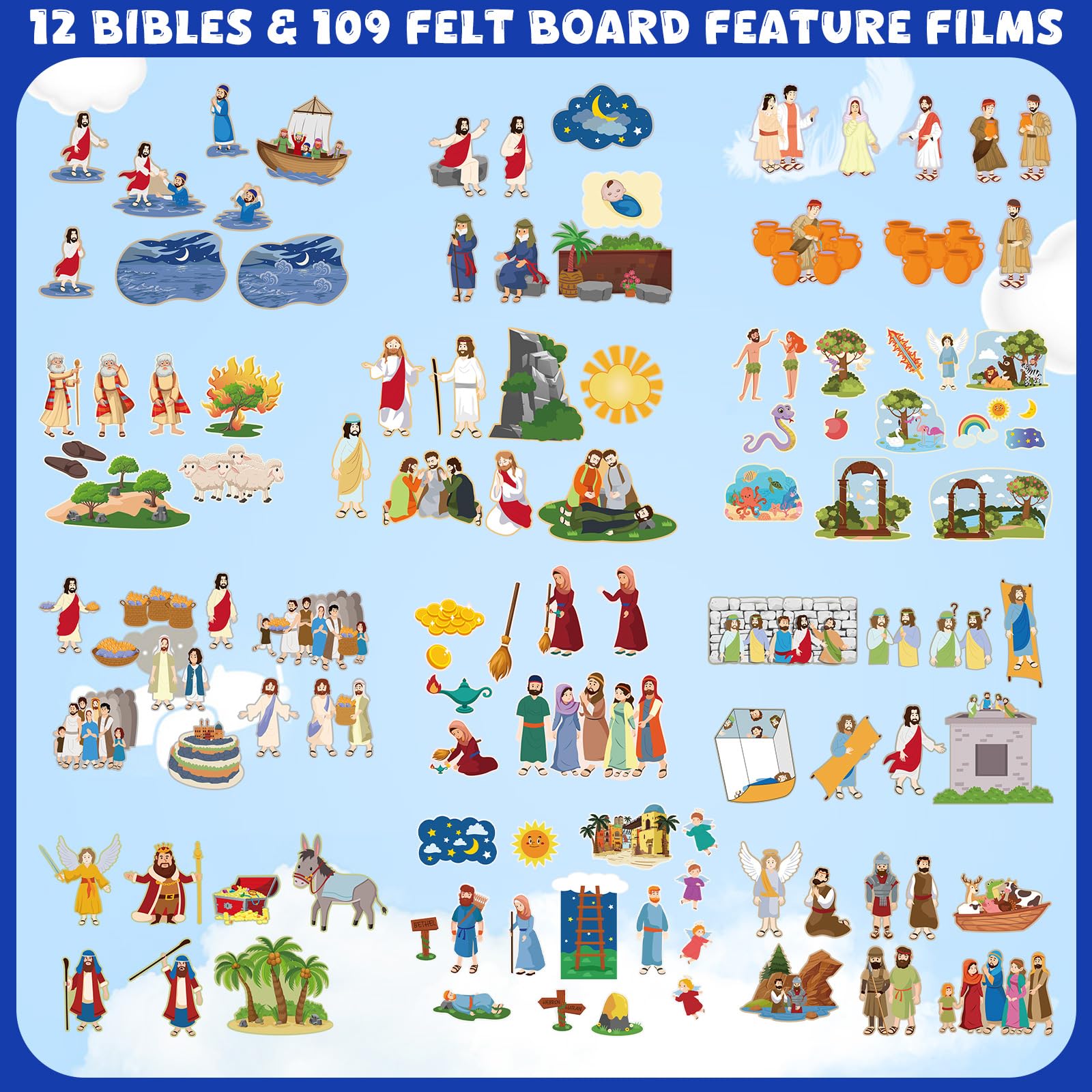 - Q: Are there specific themes included in the set? A: Yes, the Windkream Felt Board Stories Set includes diverse themes across 12 different story sets, such as the birth of Jesus, Jesus walking on water, and Adam and Eve, promoting a deeper understanding of these religious narratives.