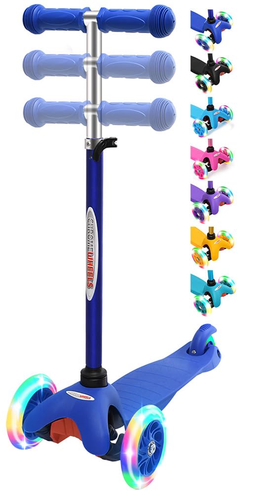 View compareChromewheels Scooter For Kids, Deluxe 3 Wheel Scooter For Toddlers 4 Adjustable Height Glider With Kick Scooters, Lean To Steer With Led Flashing Light For Ages 3-6 Girls Boys (Blue)