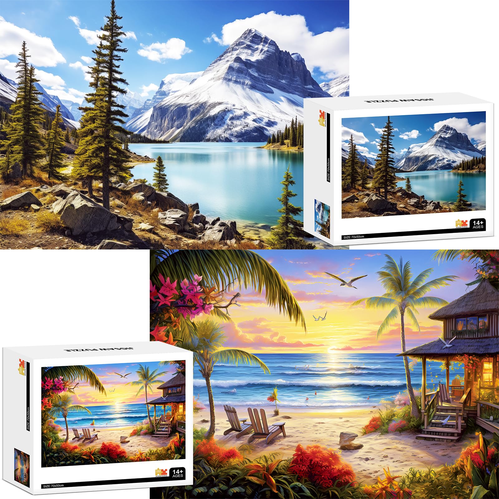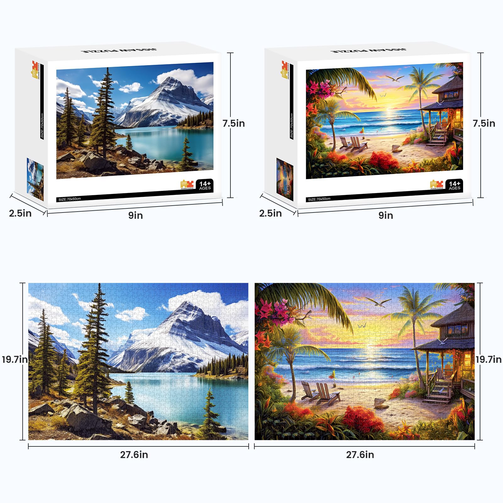 View compare2 Pack Puzzles For Adults 1000 Pieces-Hawaii Beach & Moraine Lake Difficult Jigsaw Puzzles For Adults,Hard Jigsaw Puzzle Decorations Diy Leisure Game Toy Suitable Family Friends(27.5X20 Inches)