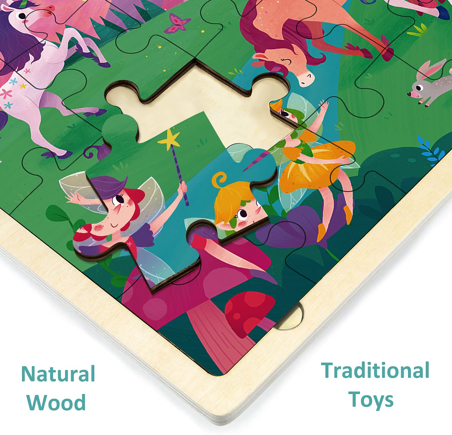 View compare24 Piece Puzzles For Kids 3 Year Old, Unique Shape Jigsaw Pieces Fairy Princess, Wooden Jigsaw Puzzles For Toddlers, Preschool Puzzles For 3 4 5 Year Old Girls With Wooden Puzzle Tray And Storage Bag