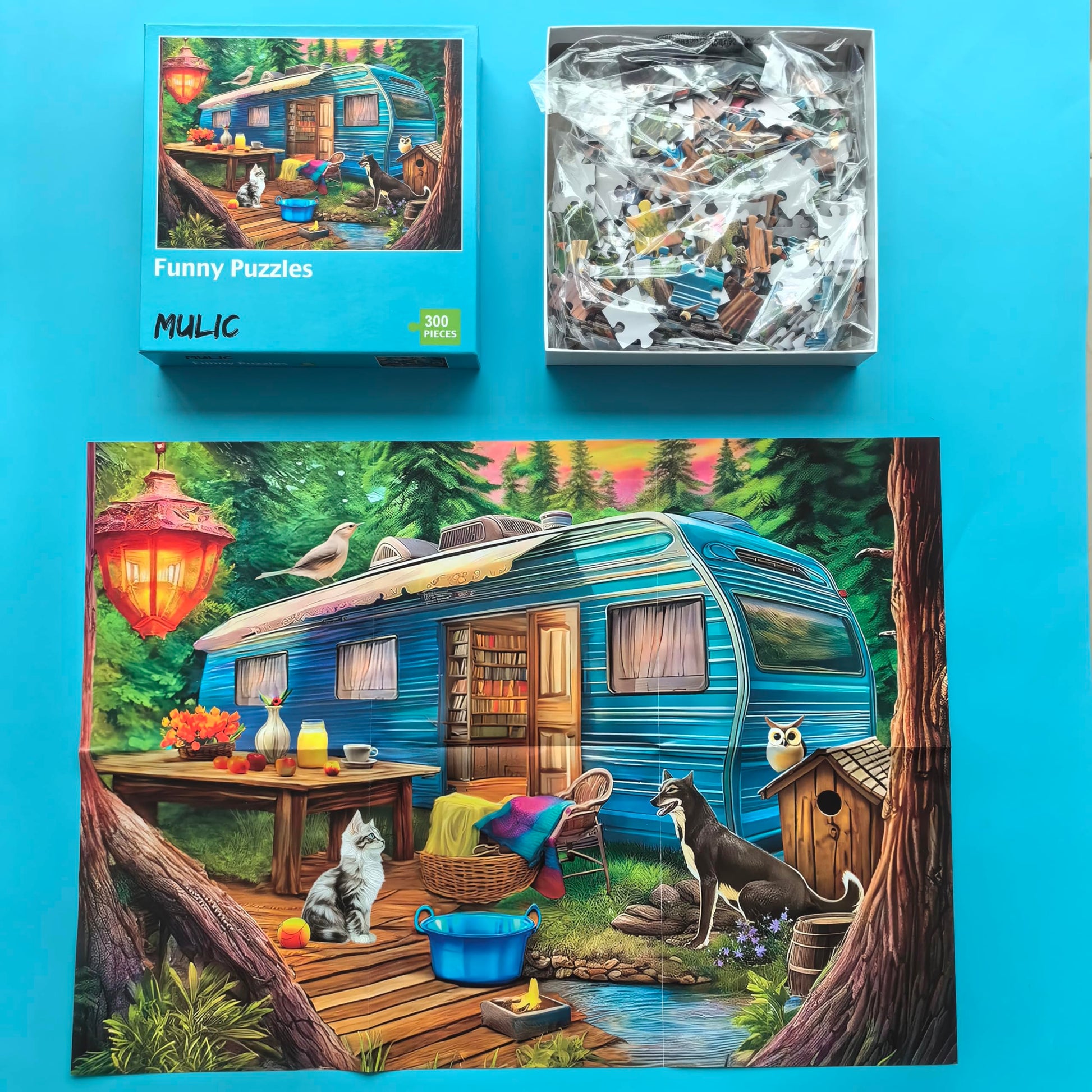 300 Pieces Jigsaw Puzzles For Adults - Puzzles For Kids Ages 6-8 8-10 10-12 - Large Piece Puzzles For Seniors - Woodland Caravan Camping