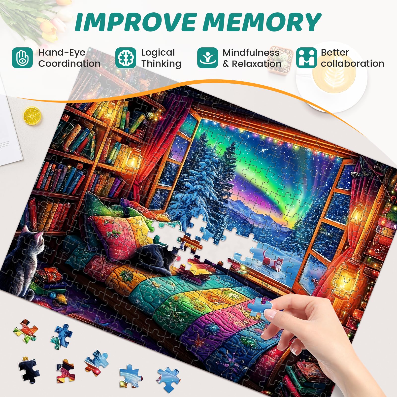 300 Pieces Puzzles For Adults | Winter Aurora Cat Jigsaw Puzzles | Large 300 Piece Puzzle For Children Adults Seniors | Sturdy,Safe | Engaging & Educational Toys Great Gift For Boys Girls 20.5 X 15 In