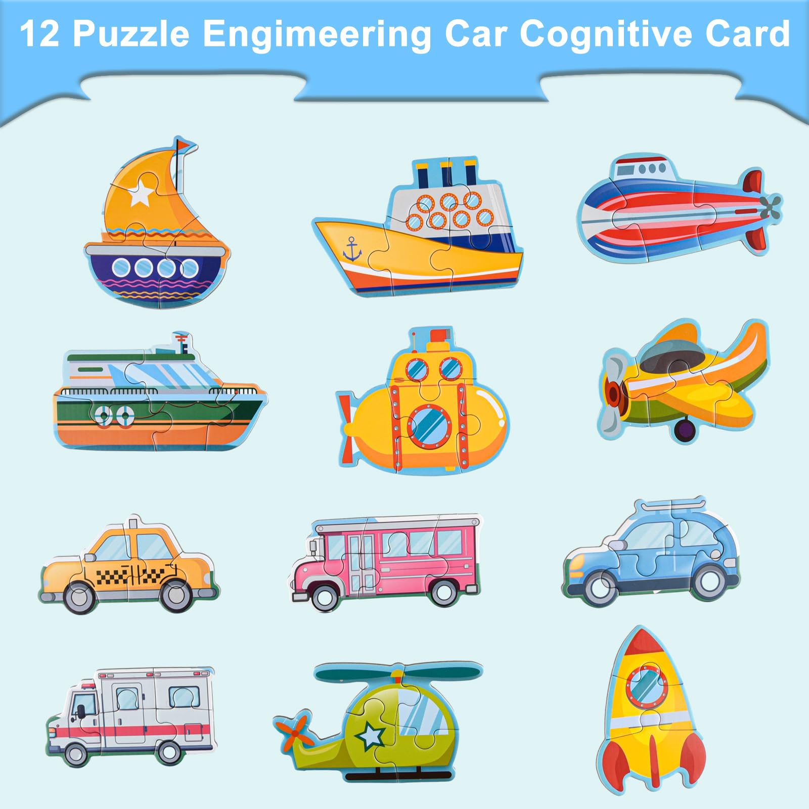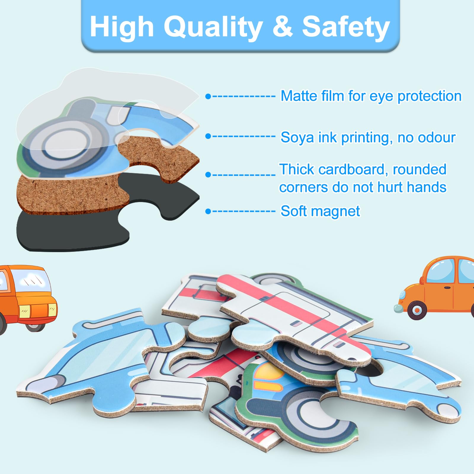 ASTARON 3D Magnetic Puzzle with 60 Puffy Stickers for Toddlers, 51 Pieces 3-in-1 Traffic Puzzles Preschool Education Learning Tr