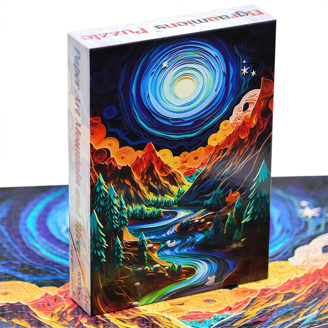 Bgraamiens Puzzle-Paper Quilling Mountains And Rivers-1000 Pieces Paper Quilling Art Puzzle Color Challenge Jigsaw Puzzles For Adults And Kids