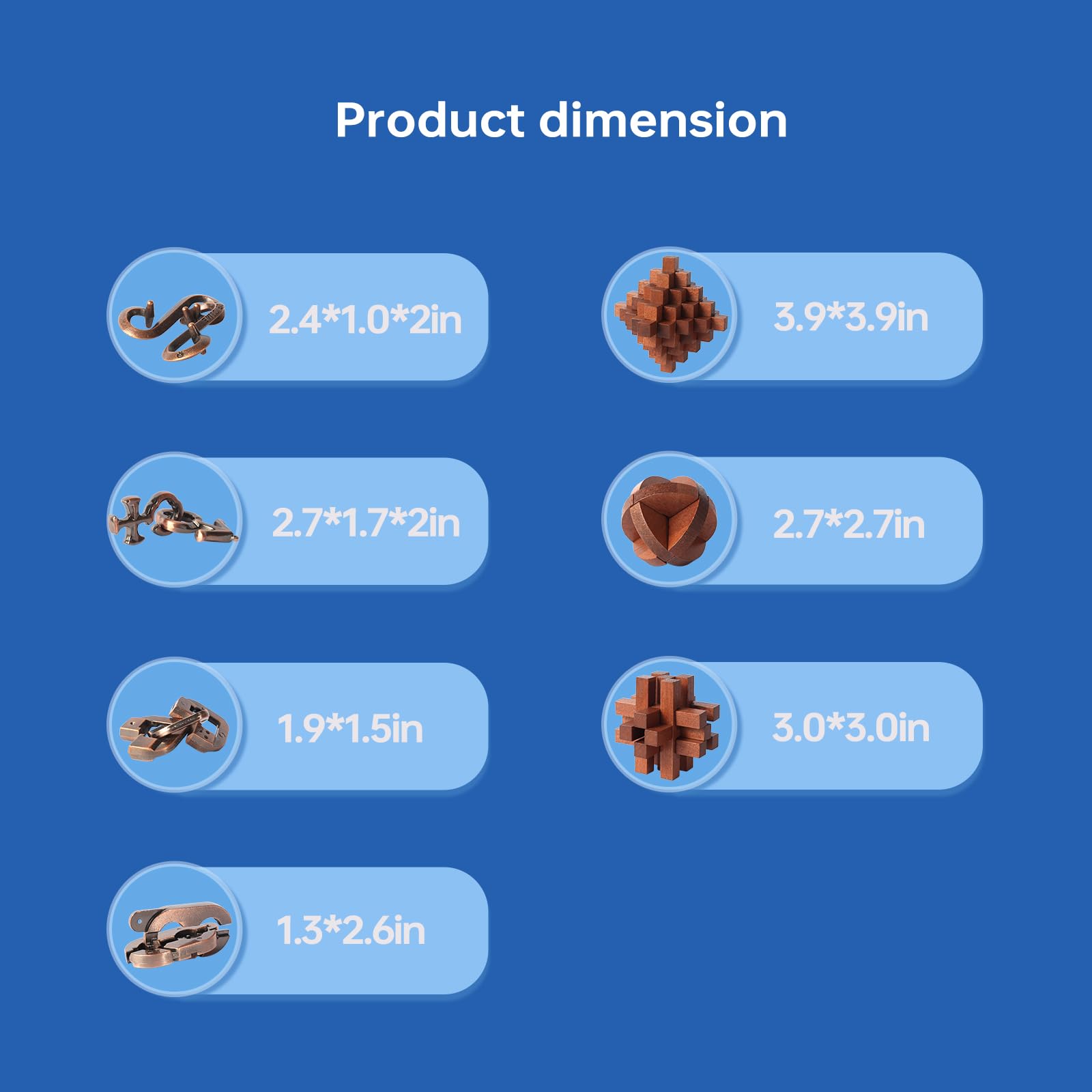 • Q: What age group is suitable for the CUDNY 7 Pieces Unlock Interlock Brain Teaser Games? A: The CUDNY brain teaser puzzles are designed for a wide range of ages, making them suitable for adults, teens, and kids. They provide engaging challenges that cater to different skill levels and can enhance critical thinking and problem-solving abilities.