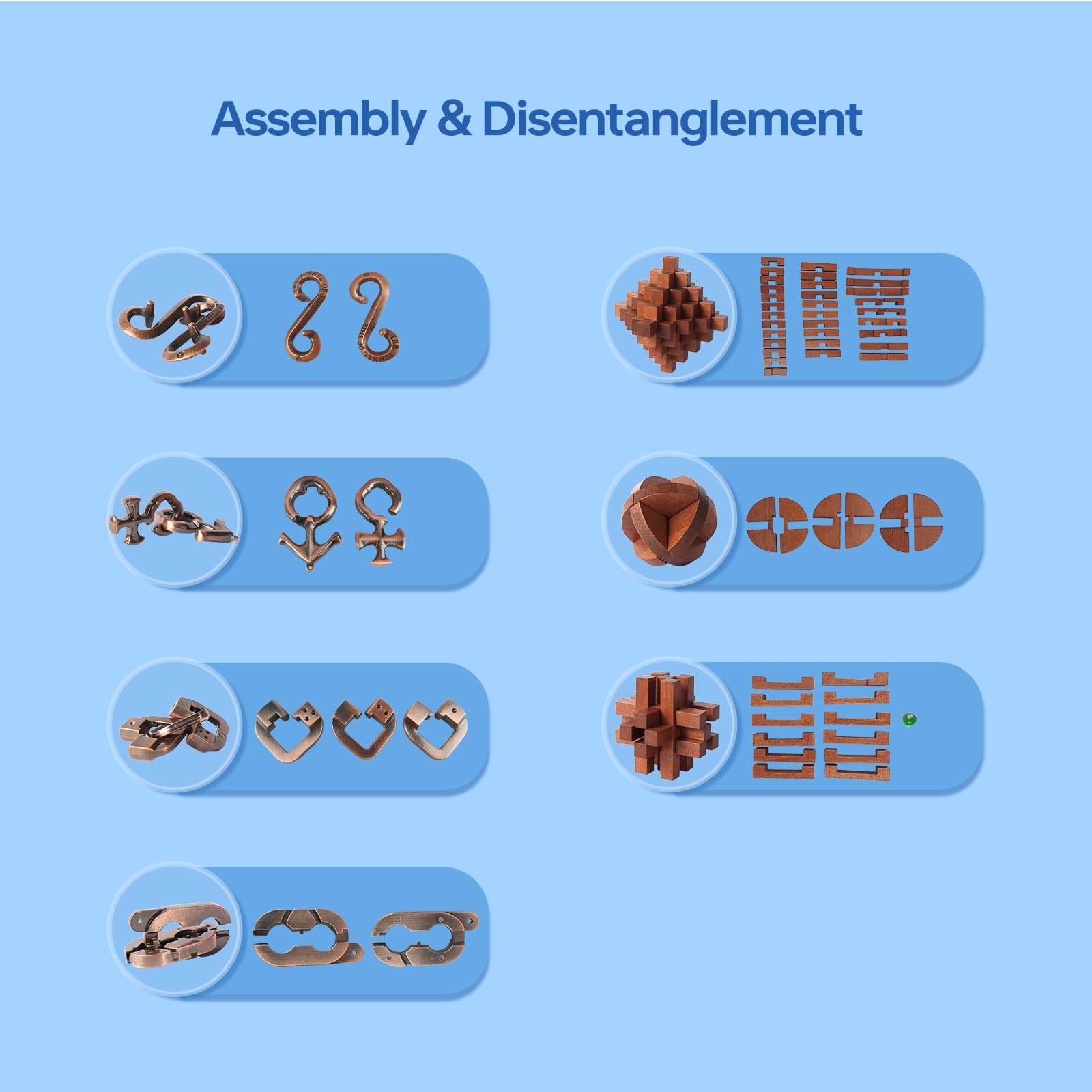 • Q: How can these puzzles improve cognitive skills? A: These puzzles challenge players to think critically and creatively, enhancing their IQ and EQ. They help improve focus, concentration, and problem-solving skills through engaging assembly and disentanglement challenges.