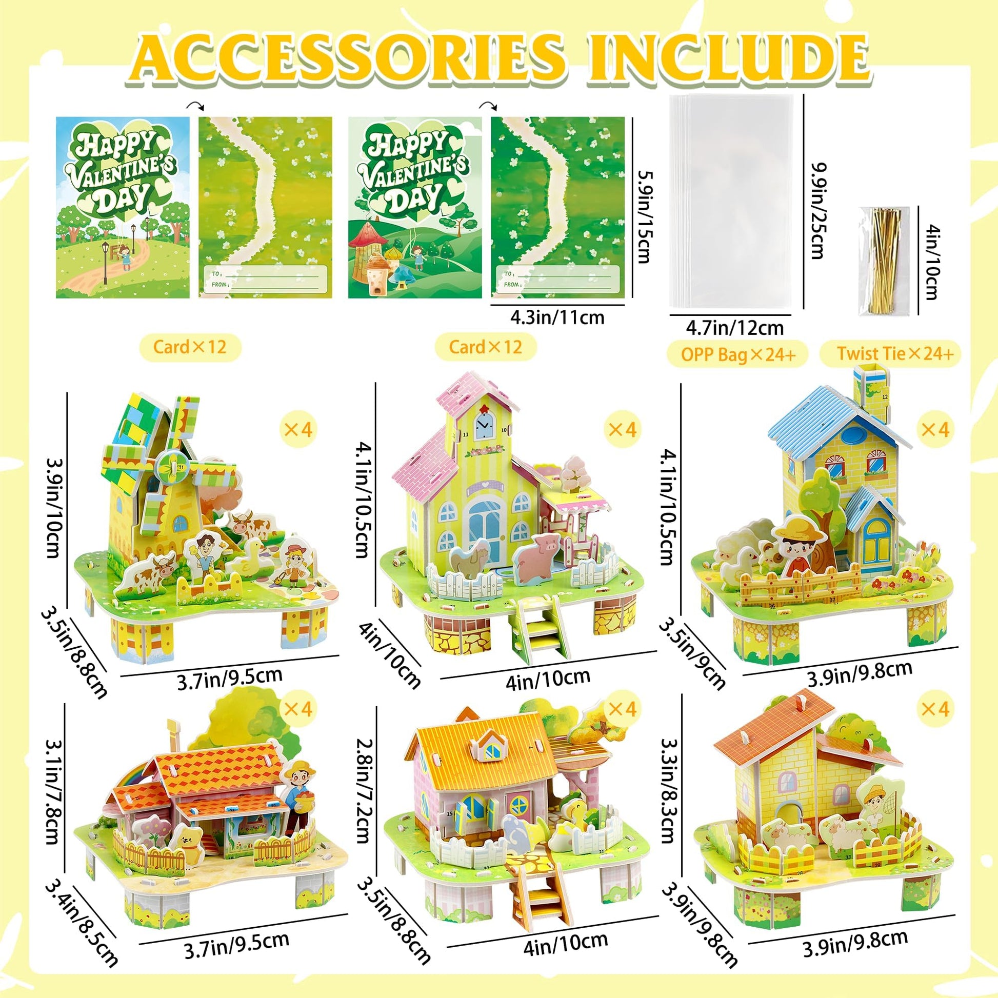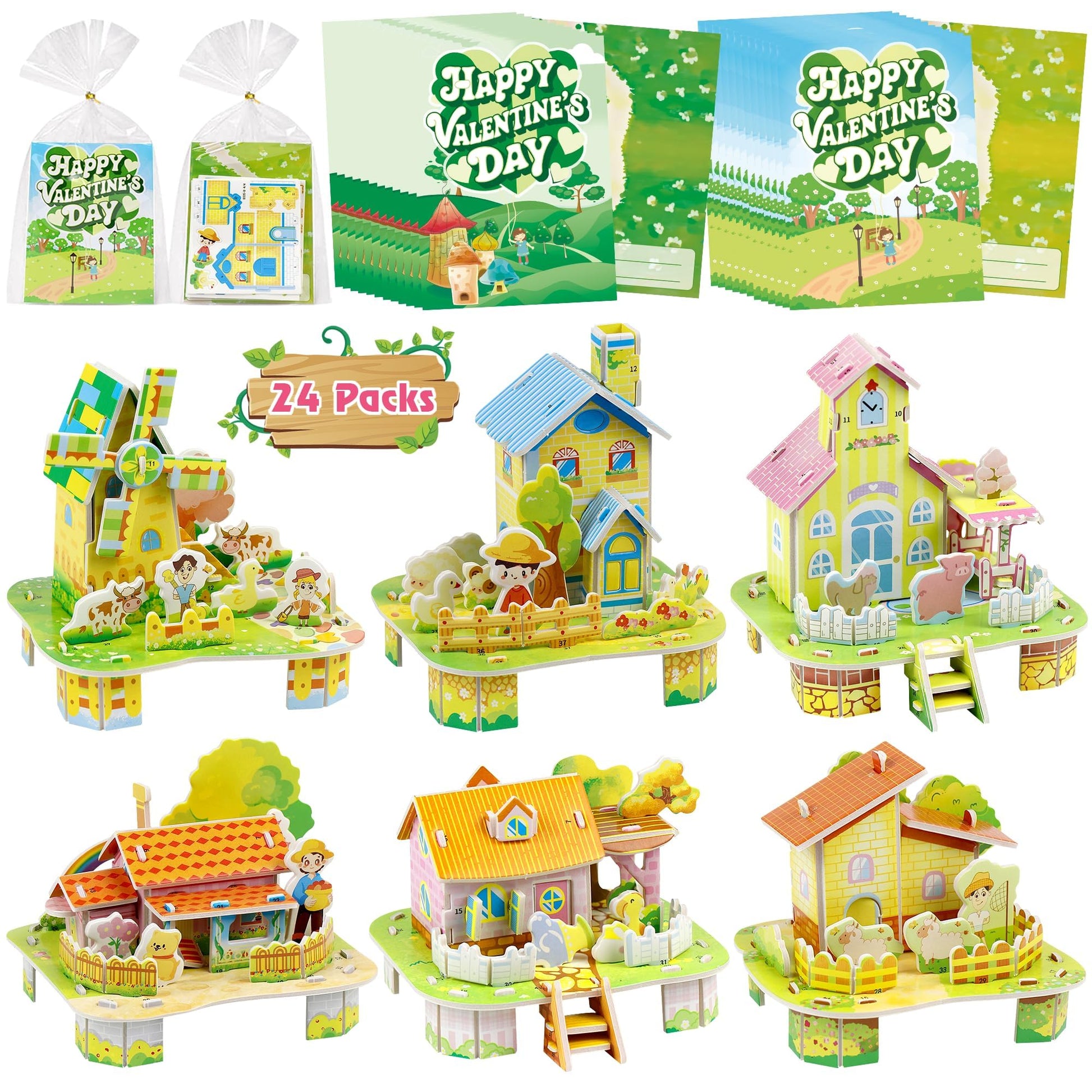 - Q: What is included in the DBPBToU 24 Packs Easter Basket Stuffers set? A: The set includes 24 pieces of 3D puzzle huts and 24 Valentine cards. Each puzzle comes with colorful illustrations and step-by-step assembly instructions, making it easy for kids to enjoy building their own mini structures.