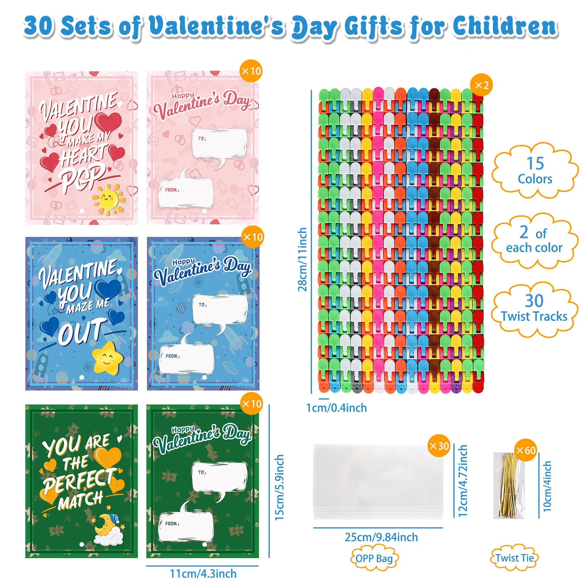 • Q: Are the Valentine's Day cards included with the toys personalized? A: Yes, the set includes 30 Valentine's Day cards with three different titles and patterns. Each card has a blank space for kids to write their names and personalized greetings, making them perfect for gift exchanges.