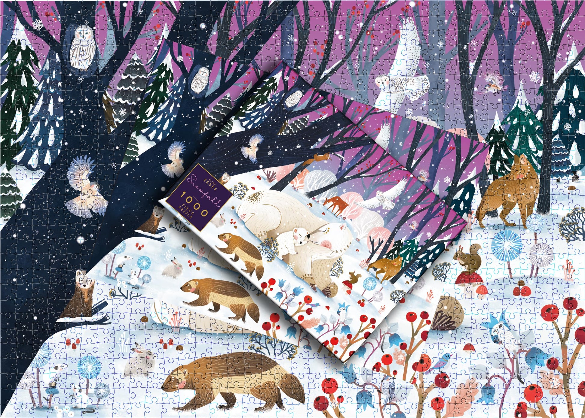 Elena Essex Puzzle - Snowfall | Christmas Puzzles 1000 Pieces | Puzzles For Adults 1000 Pieces | Holidays Snow Polar Bear Winter Animals Puzzle | Size 28X20 Inches