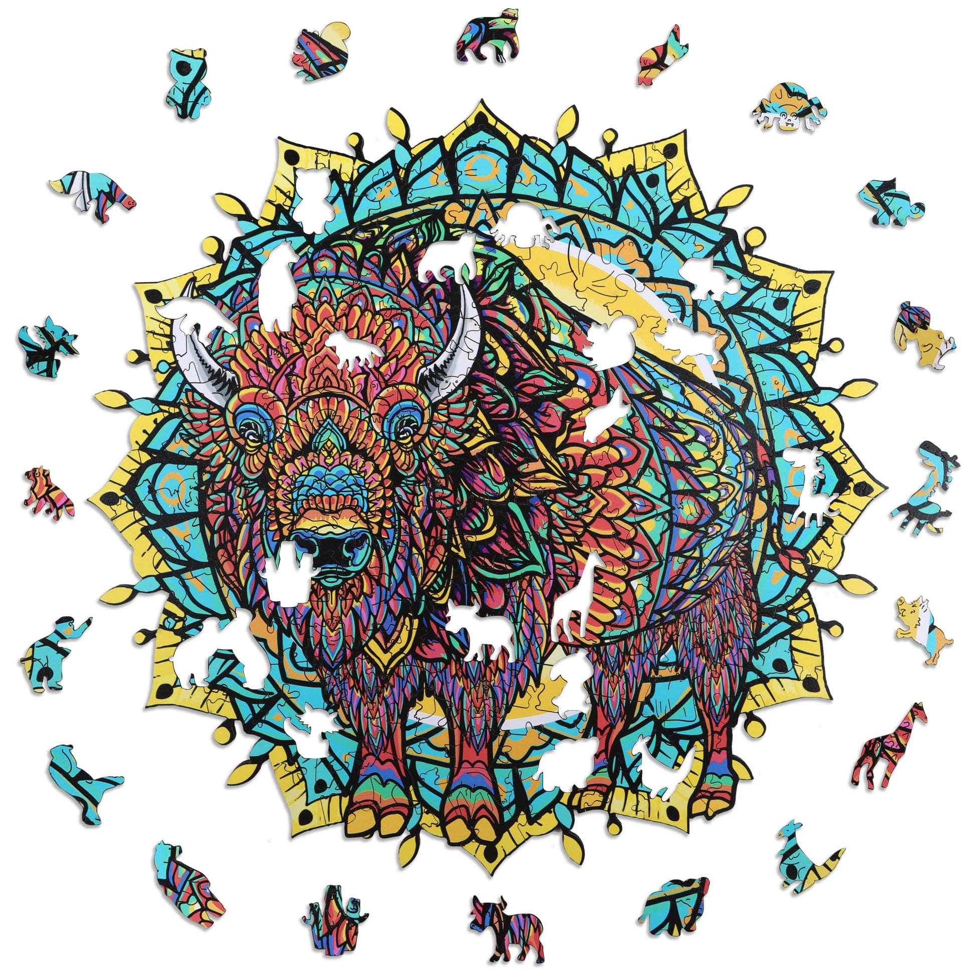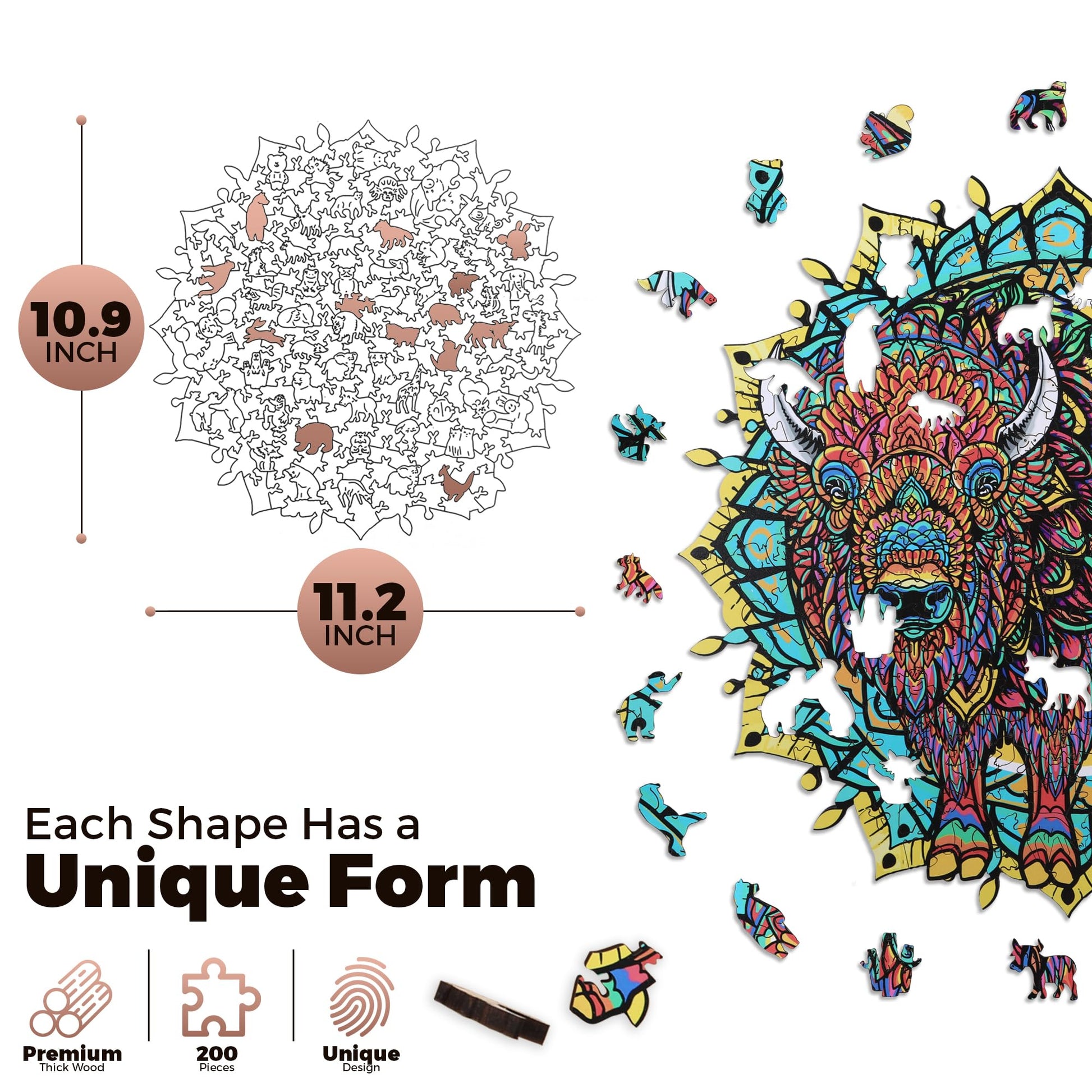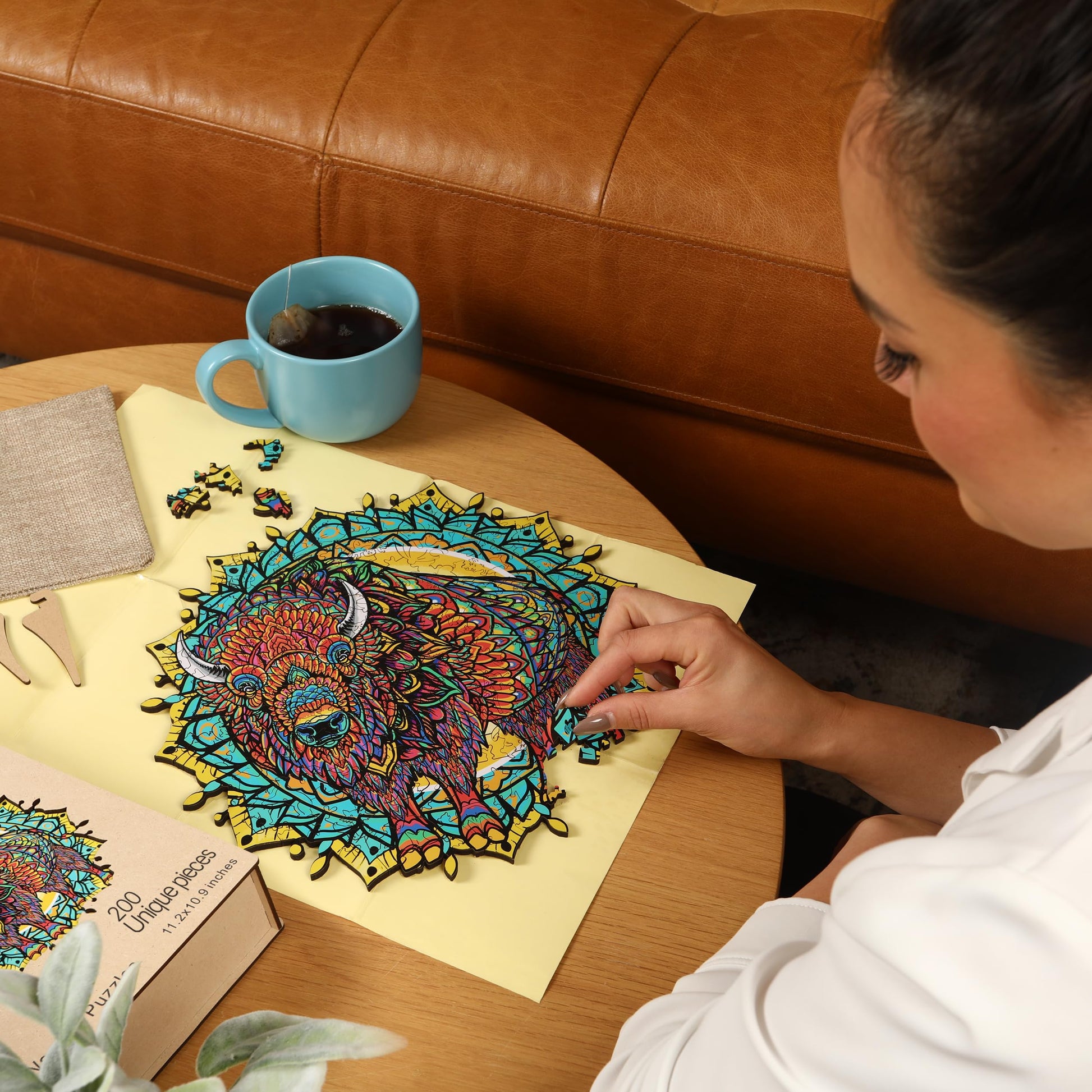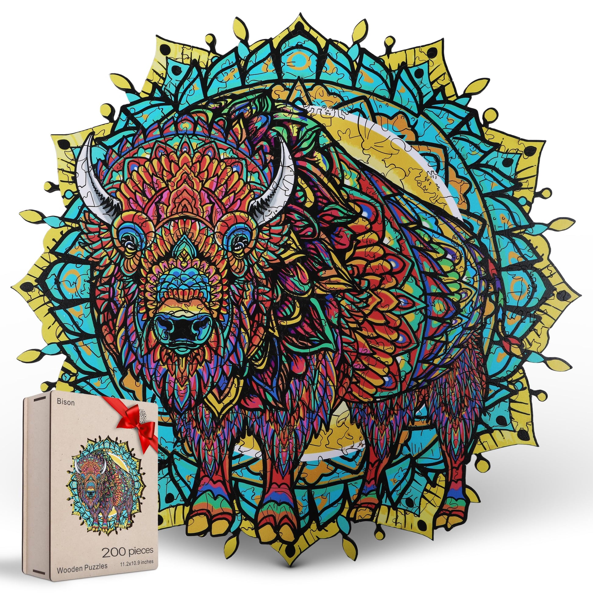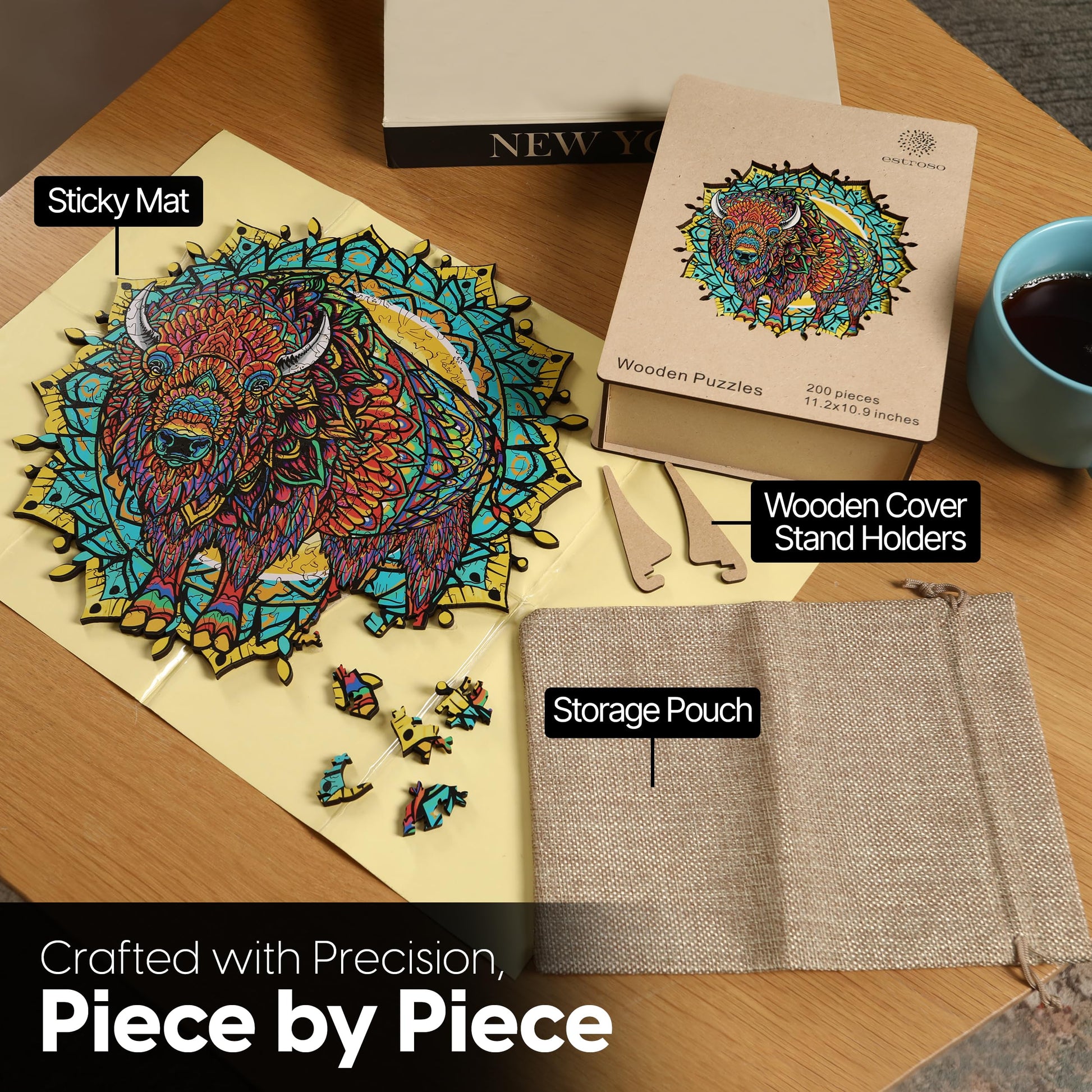 Estroso Wooden Puzzles For Adults - American Bison 200 Piece Wooden Jigsaw Puzzle - 11.2X10.9 Inches - Giftable Wooden Box And C