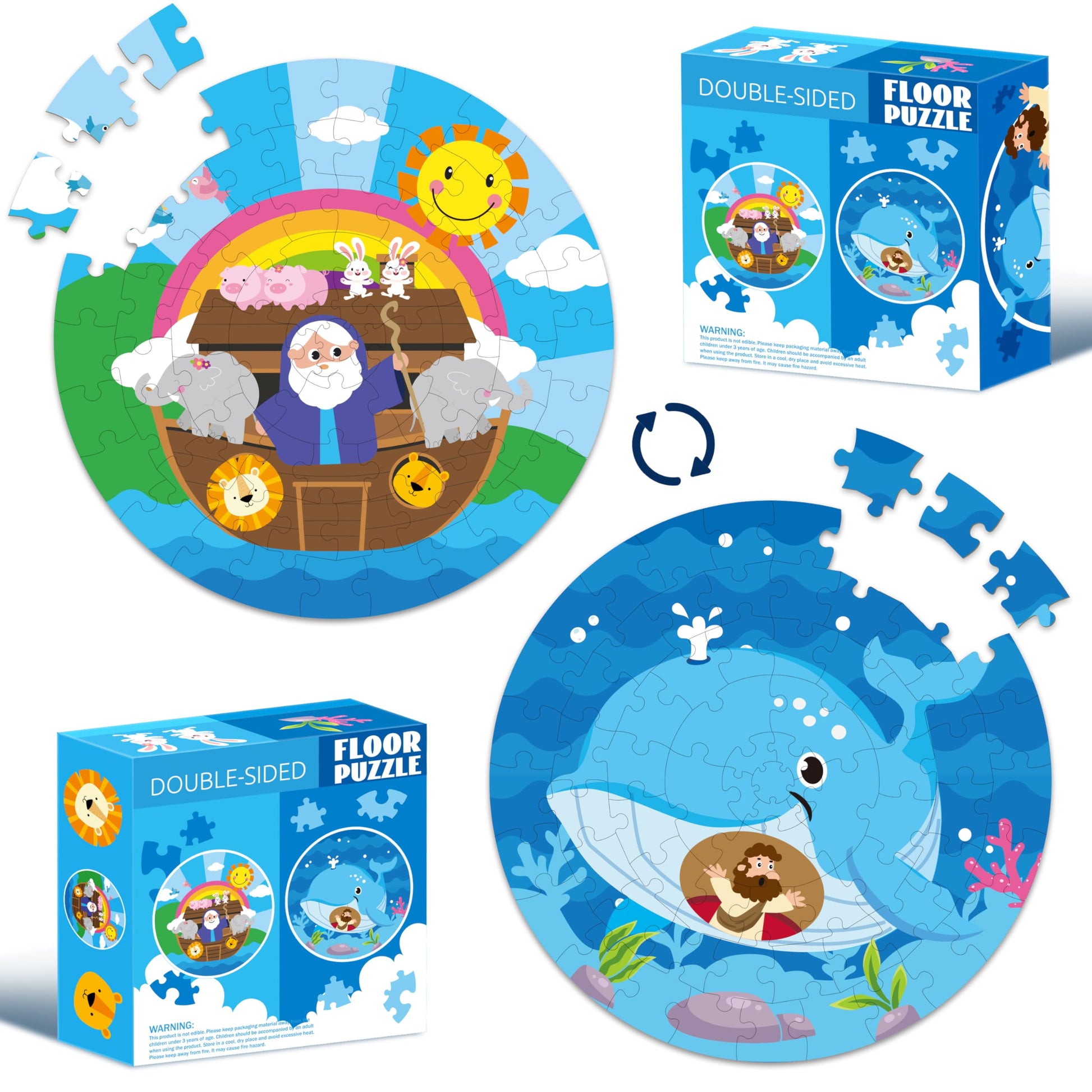 Haooryx Bible Stories Jigsaw Puzzles - 71pcs Noahs Ark & Jonah and The Whale Jigsaw Puzzle Set Double-Sided Cartoon Bible Storie