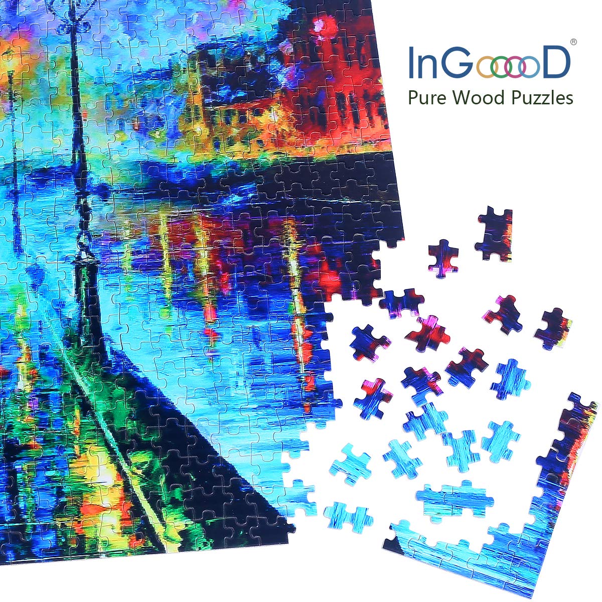 Ingooood- Jigsaw Puzzle 1000 Pieces- Must-Have Collections Series-Rainy Night Walk,Accompanied Oil Painting Jigsaw Puzzles For Adults Teens Kids Brain Teaser (Accompanied)