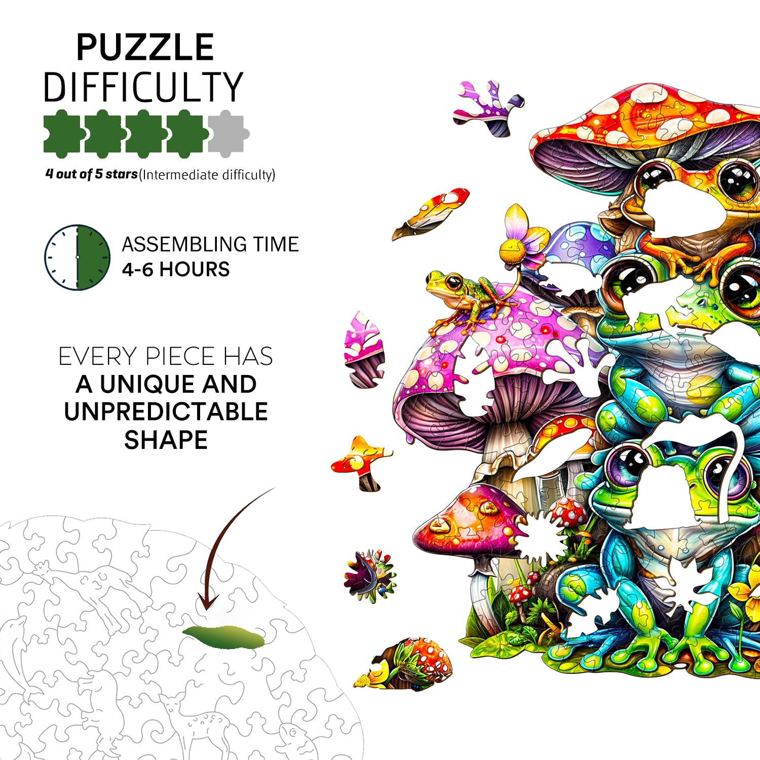 Jigfoxy Wooden Puzzle For Adults, Frog Family Wooden Jigsaw Puzzles For Adults, Unique Animal Shape Wood Cut Puzzles For Family Friend Puzzle Lovers(L-13.3 * 12.8In-260Pcs)