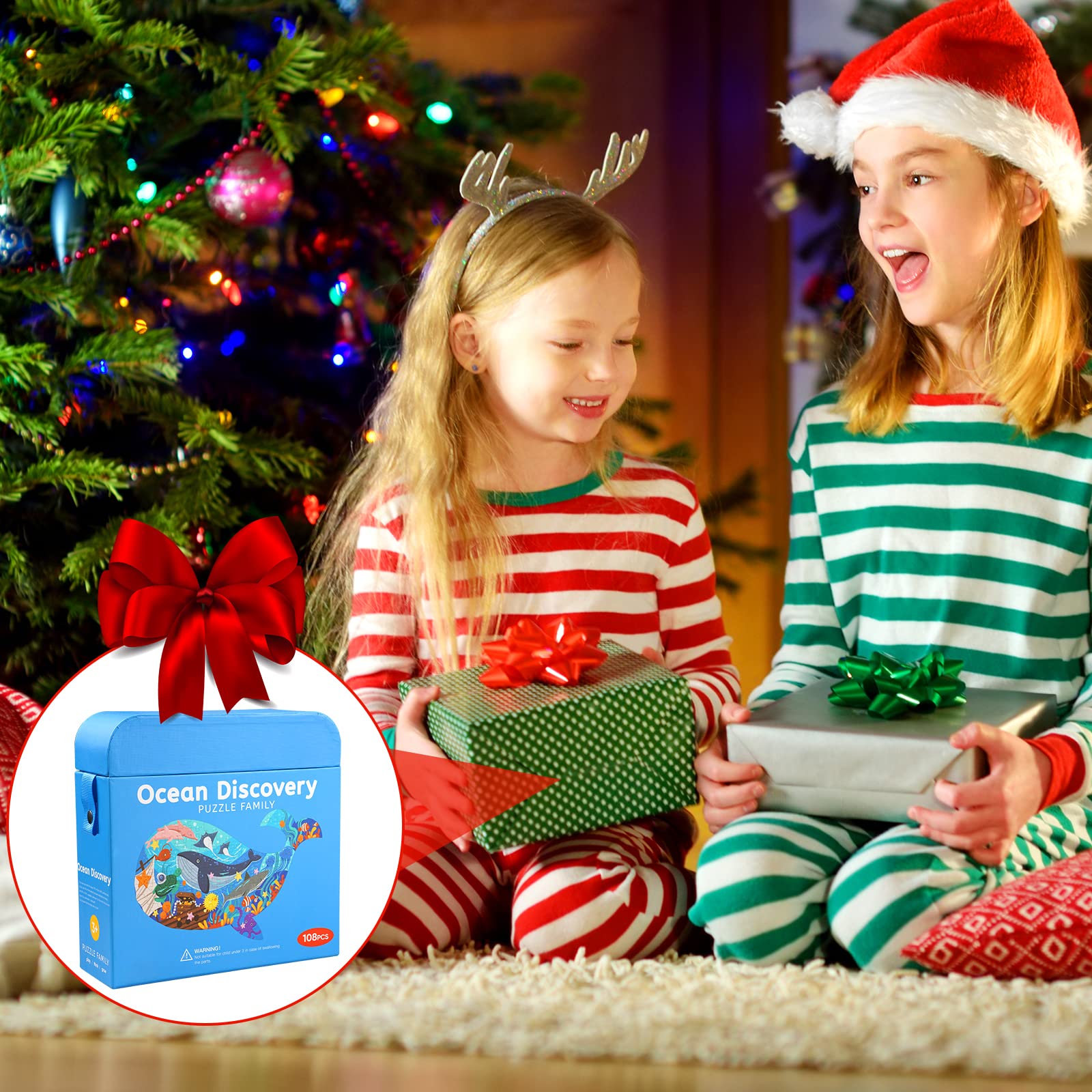 - Q: What is included in the puzzle set? A: The set includes 108 pieces of sturdy whale-shaped puzzles, a bonus poster, and an exquisite gift box with a rope handle for easy storage and organization.