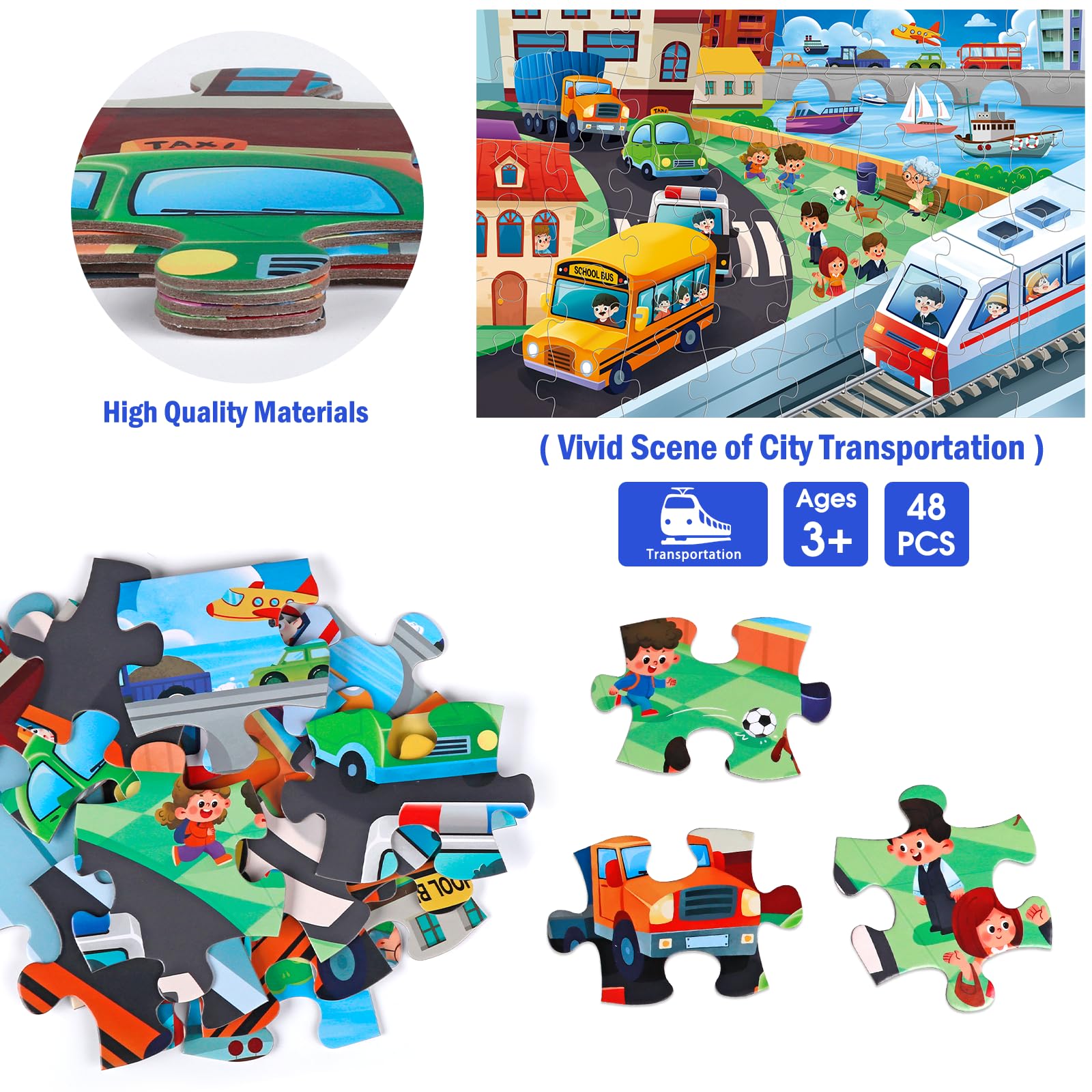 Jumbo Floor Puzzle For Kids,City Transportation Jigsaw Large Puzzles,48 Piece City Life Vehicle Puzzle For Toddler Ages 3-5,Children Learning Preschool Educational Toys,Gift For 4-8 Years Old