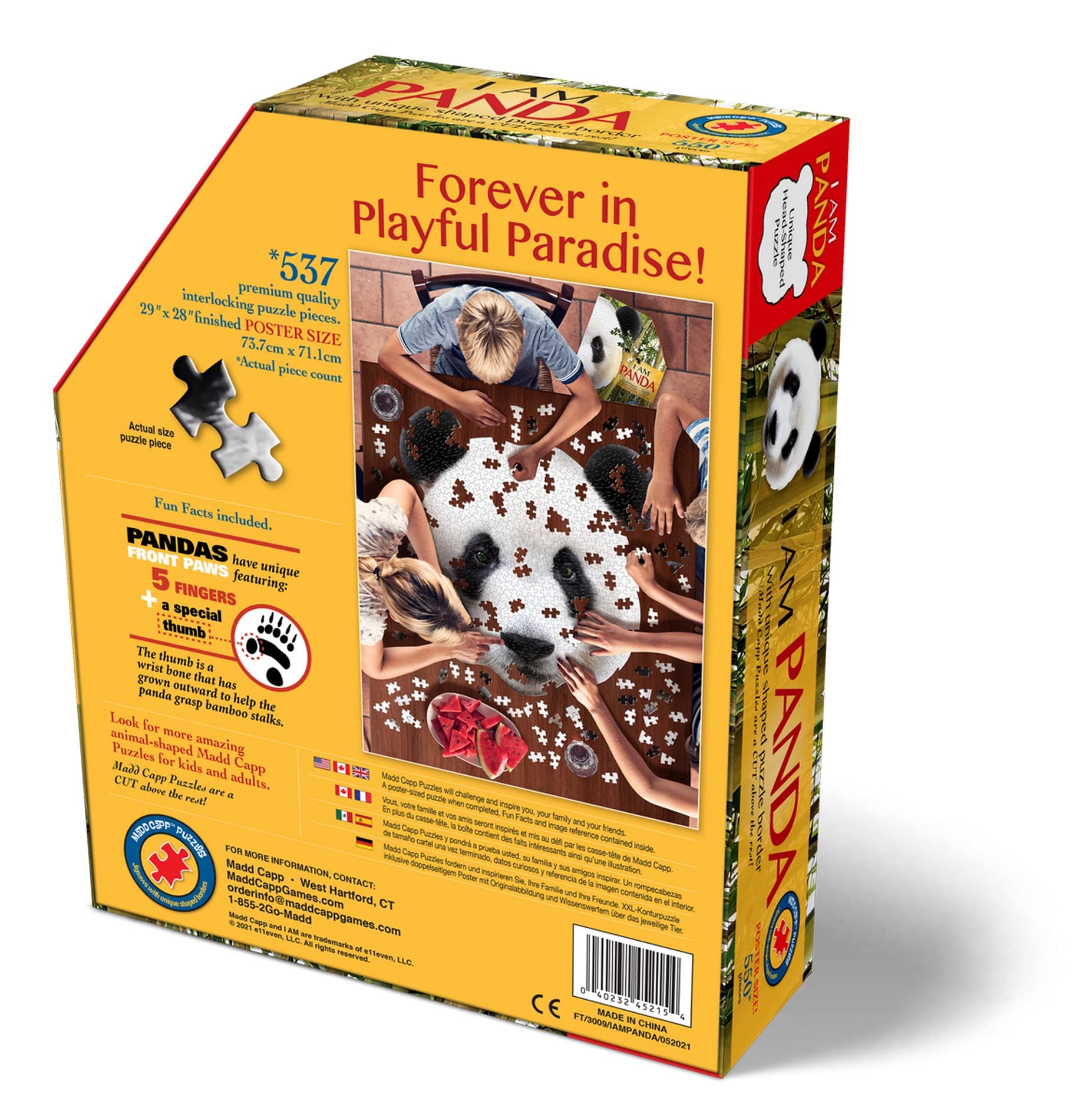 Madd Capp PANDA 550 Piece Jigsaw Puzzle For Ages 10 and up - 3009 - Unique Animal Head-Shaped Border, Poster Size, Challenging Random Cut, Deluxe Five-Sided Tamperproof Box Fits on Bookshelf, Includes Educational Madd Capp Fun Facts