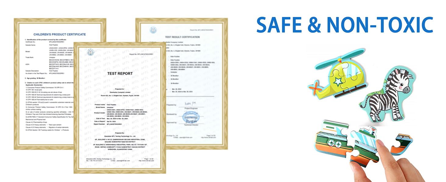 • Q: Are the materials used in these puzzles safe for toddlers? A: Yes, these puzzles are made from high-quality cardboard with strict safety standards, ensuring that they are sturdy and safe for children. The edges are burr-free, and the magnets are strong yet soft to prevent any accidents.