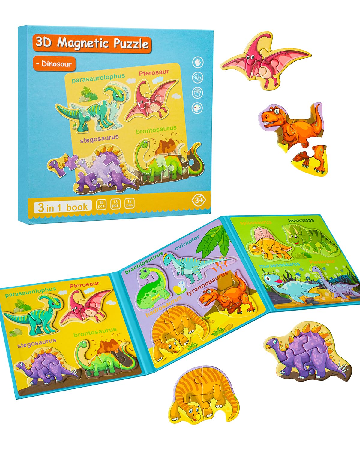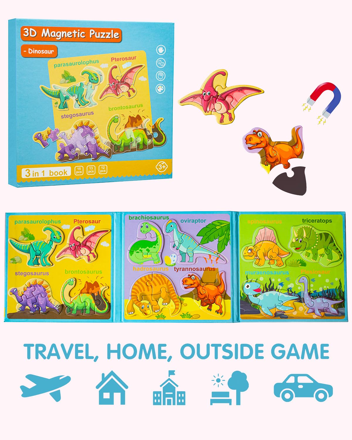 Magnetic Puzzles For Toddlers 2-4, Travel Puzzles Games For Kids Ages 1-3, Dinosaur Activities Toy Wooden Jigsaw Puzzles Book Fo