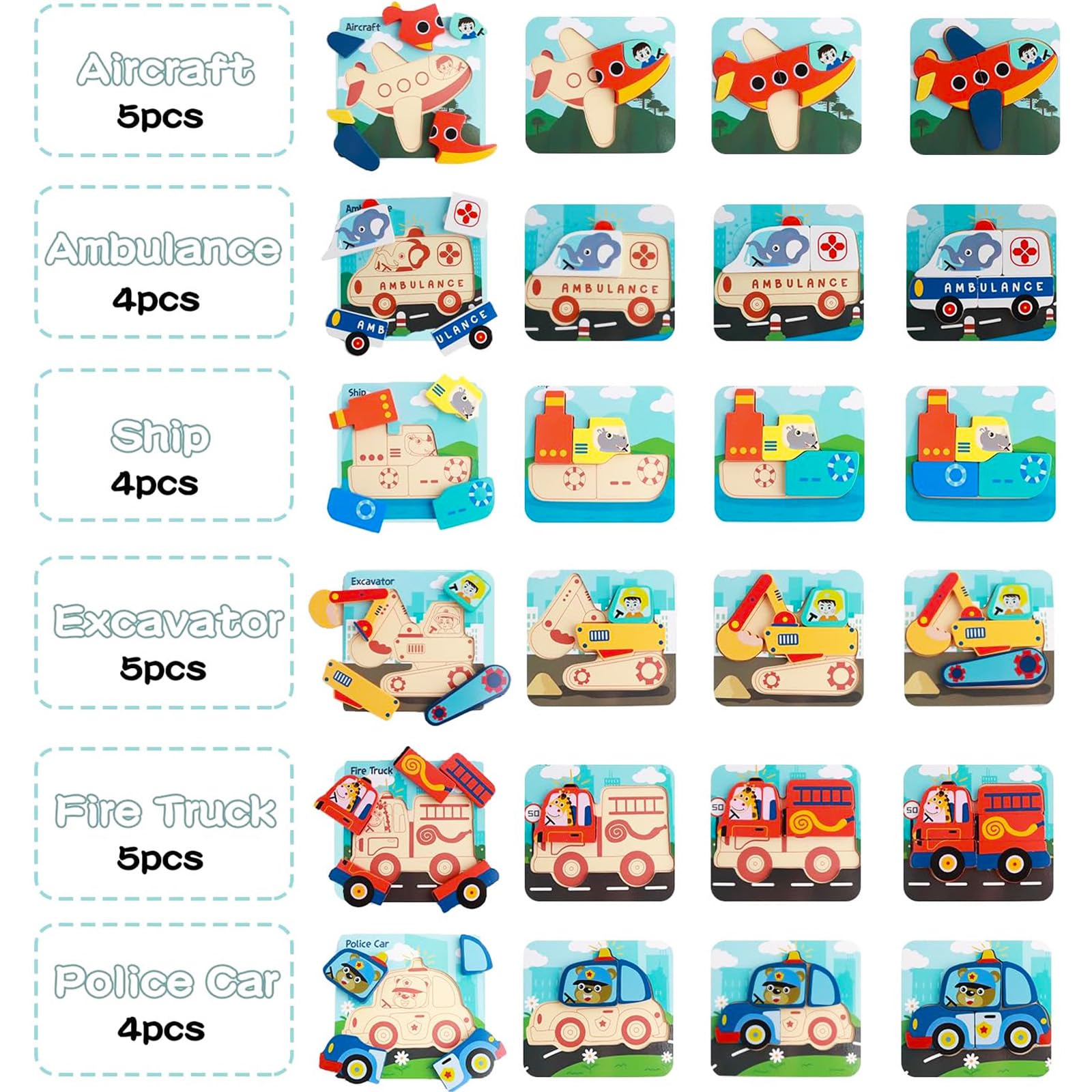 Introducing Our 6 Pack Vehicle Wooden Puzzles, Designed To Delight Toddlers Aged 1-3. These Educational Toys Feature Vibrant Vehicle Designs, Including A Ship, Aircraft, Fire Truck, Excavator, Police Car And Ambulance. Crafted From Premium, Non-Toxic Wood With Smooth Edges, They Ensure Safety And Durability. These Brightly Colored Puzzles Capture Your Child'S Attention, Promoting Eye-Hand Coordination And Fine Motor Skills. Perfectly Sized For Little Hands, They Encourage Problem-Solving And Critical Thinking As Toddlers Match Each Piece To Its Spot. These Puzzles Make Great Gifts For Ages 1-3 And Up, Offering Endless Hours Of Fun And Learning. Ideal For Birthdays, Holidays, Or Everyday Play, They Provide A Meaningful, Educational Experience. Enhance Your Child'S Development With Our 6 Pack Vehicle Wooden Puzzles. Let Children Embark On Their Puzzle Journey Right Away.