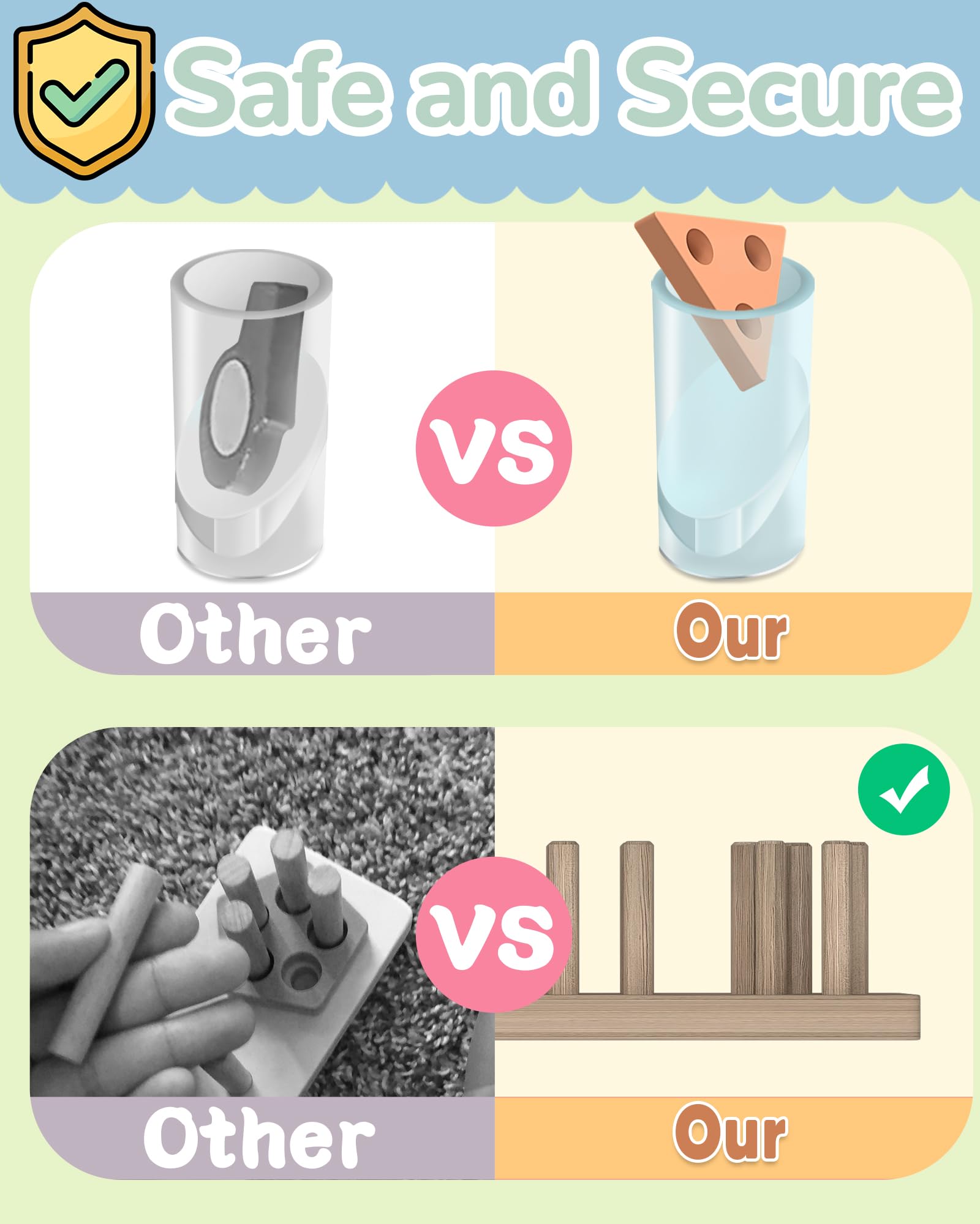- Q: What materials are used in these Montessori sorting and stacking toys? A: The sorting and stacking toys are made from high-quality wood and feature non-toxic, water-based paint, ensuring they are safe for your toddler to play with.