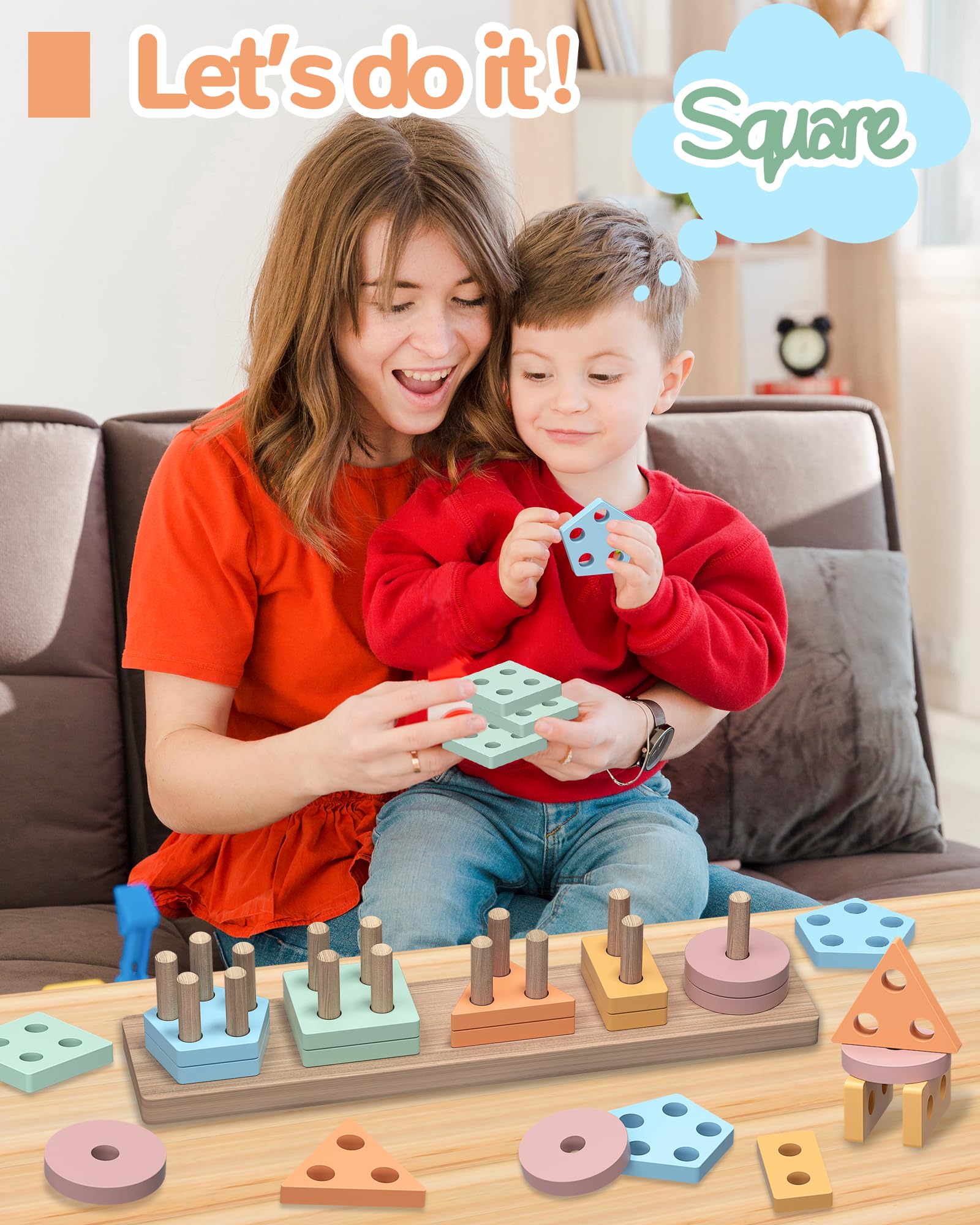 Montessori Toys For 1 2 3 Year Old Boys Girls, Wooden Sorting & Stacking Toys Puzzles For Toddlers 1-3, 1 2 Year Old Girl Boy Bi