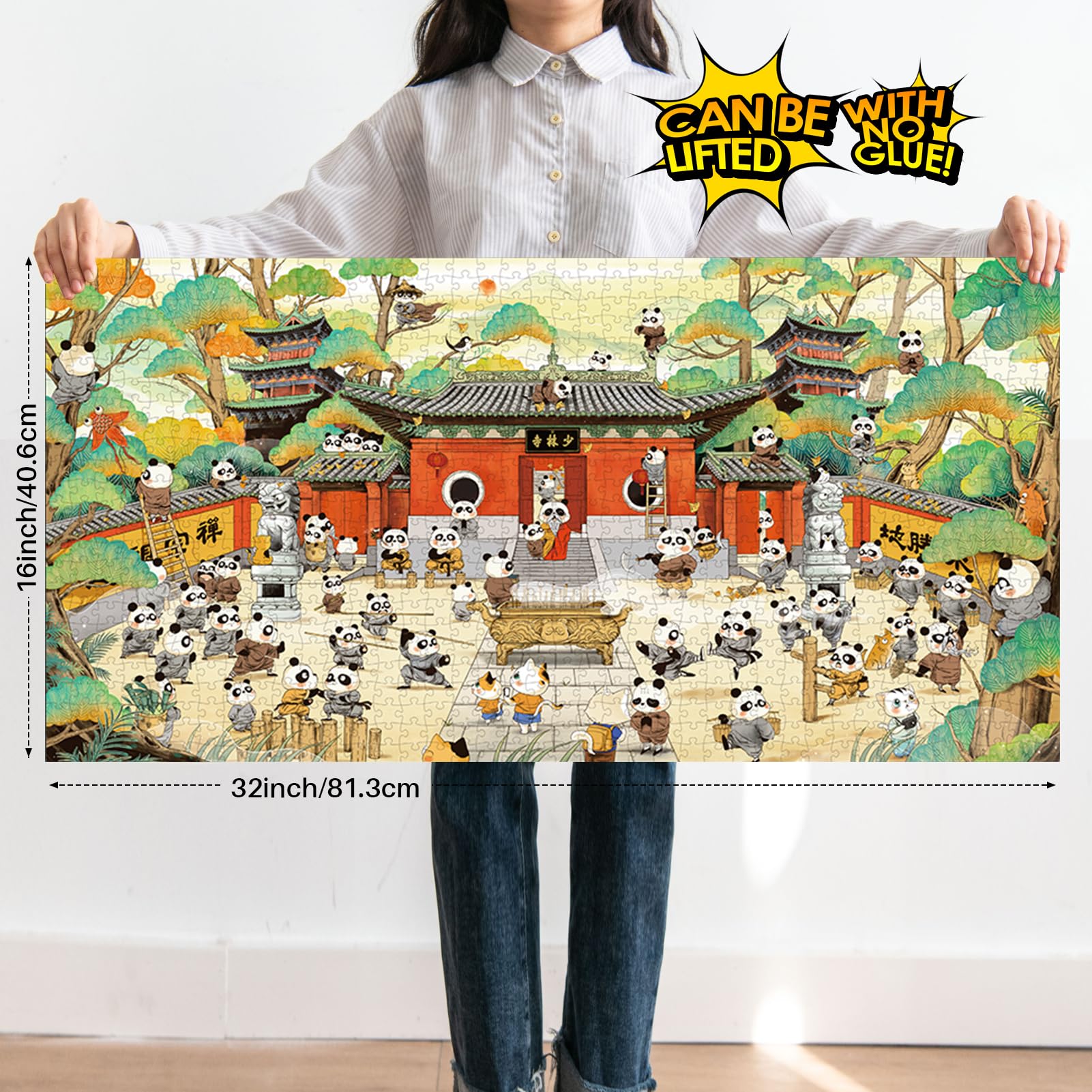 Puzzles For Adults 1000 Pieces, Momibook Jigsaw Puzzles Of Animal Chinese Panda, Painting Image 81.3X40.6Cm(32''X16'') Toys & Ga