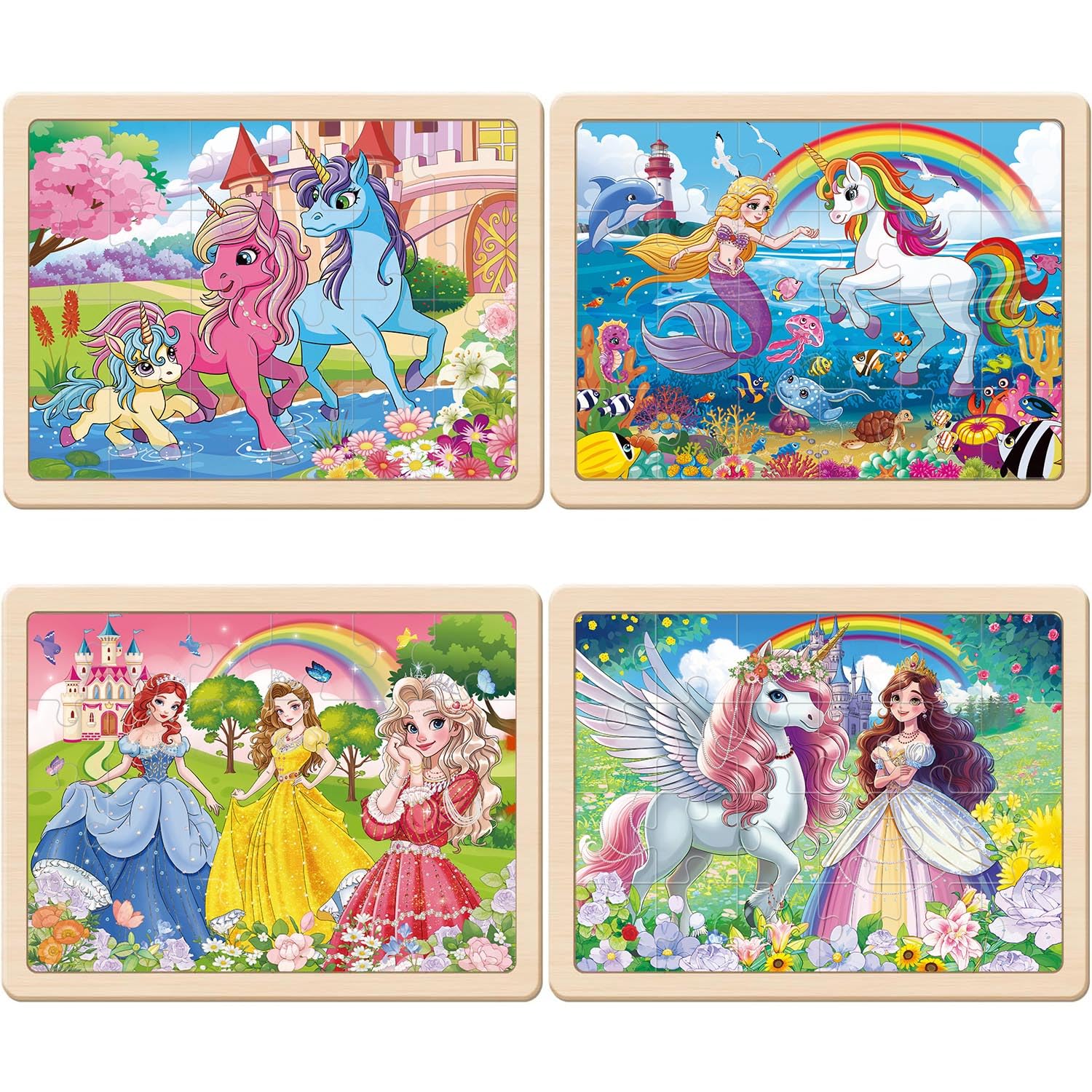 Puzzles For Kids Ages 4-6, Large 24 Pcs Unicorn Mermaid Princess, Wooden Jigsaw Puzzles For Toddlers, Preschool Educational Puzz